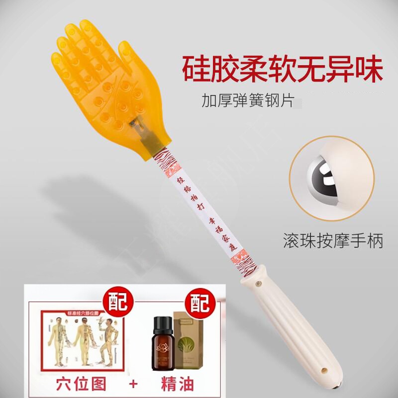 Пальмовая пощечина на панели для массажного устройства для здоровья постучало по ногам и постучал по заднему молотку, задней части маленькой желтой руки, силиконовые меридианы,