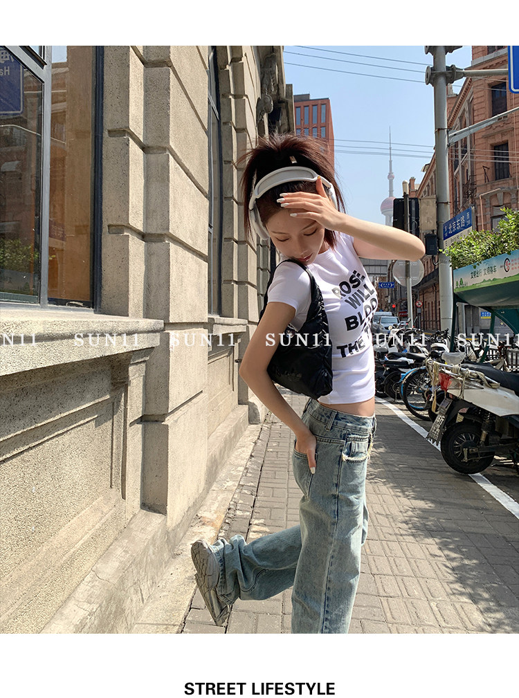SUNONEONE Белая ретро весенняя дизайнерская короткая футболка, в американском стиле, тренд сезона