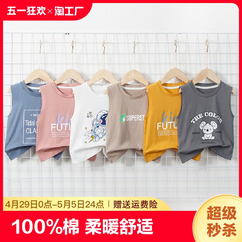 Детская хлопковая летняя тонкая майка топ, футболка для мальчиков без рукавов, в западном стиле