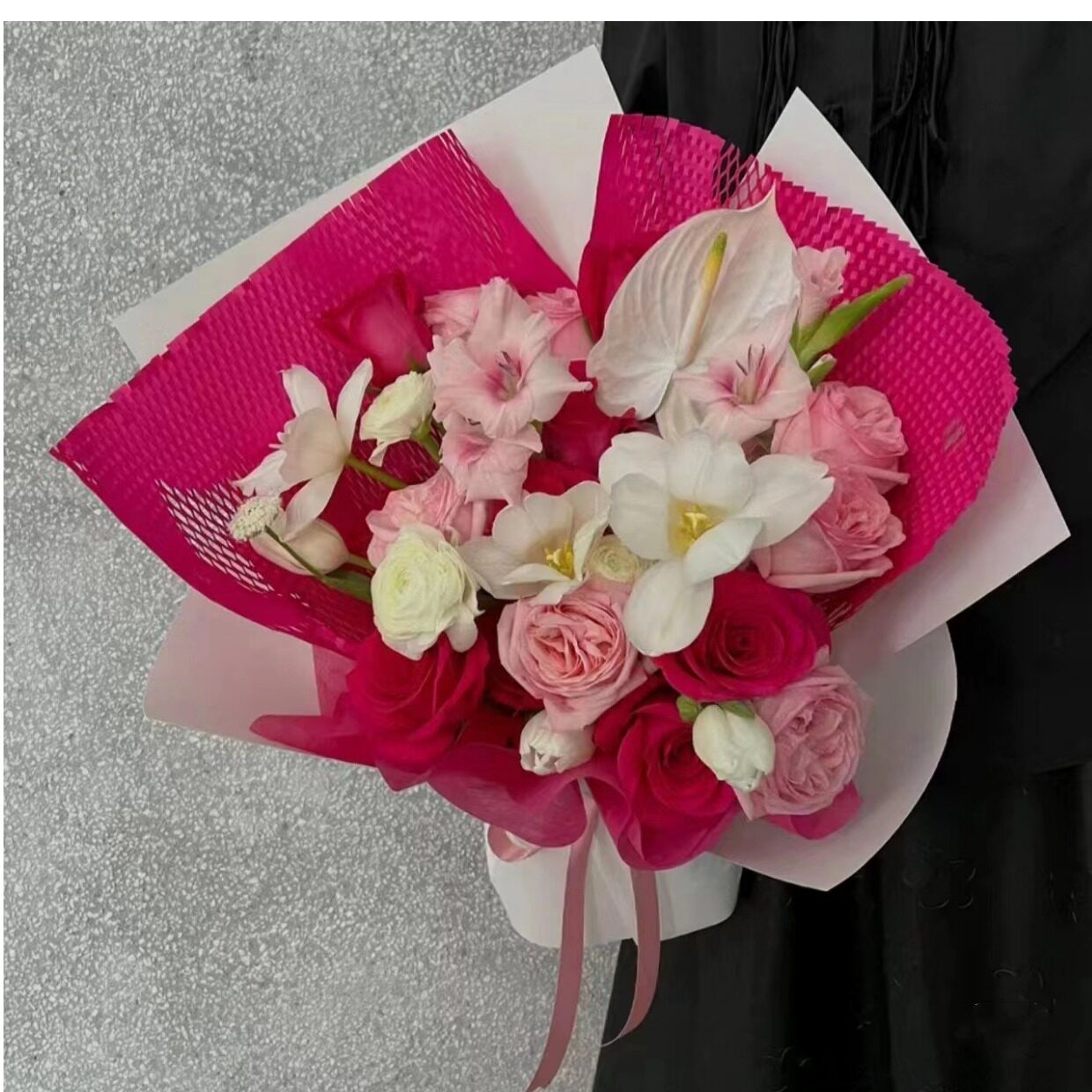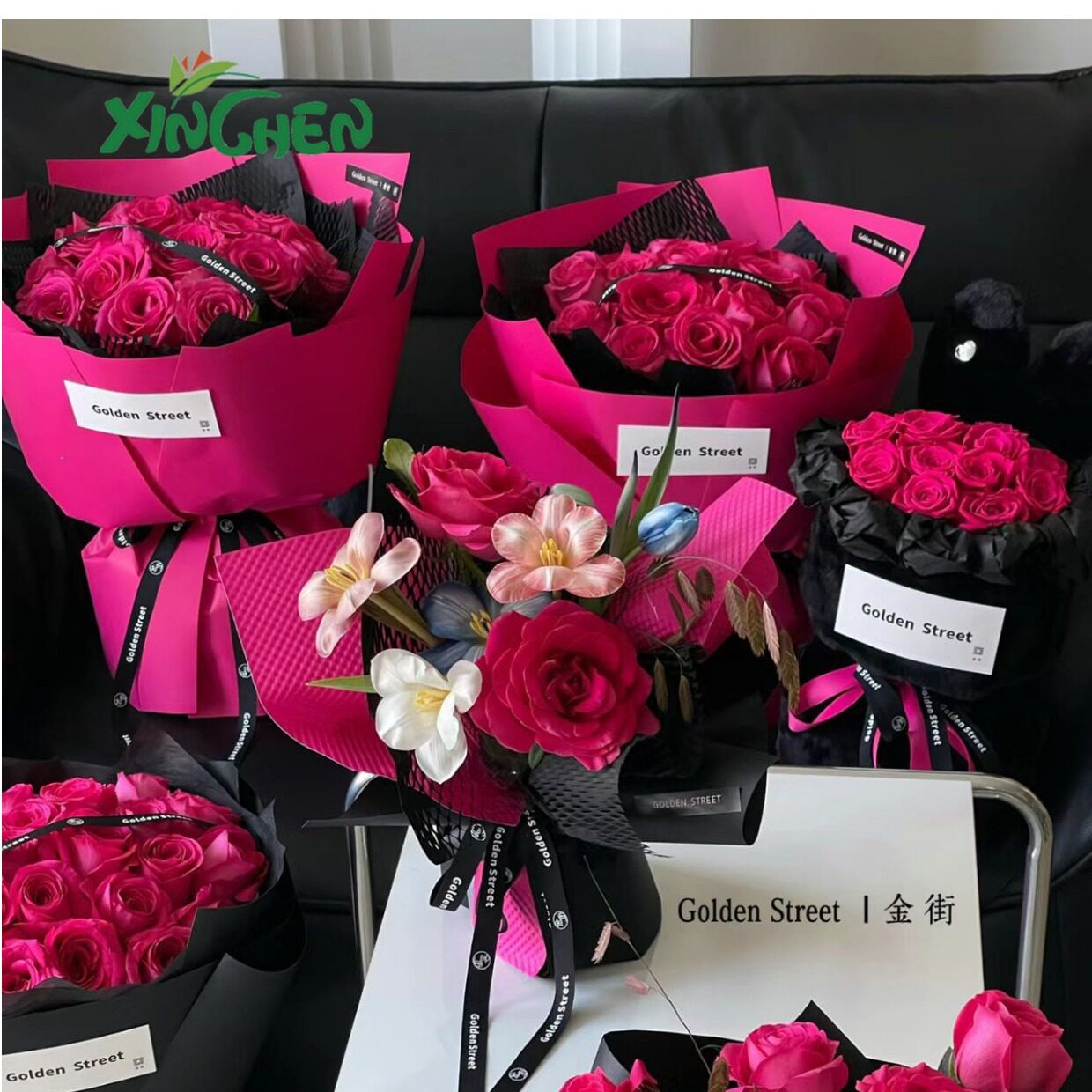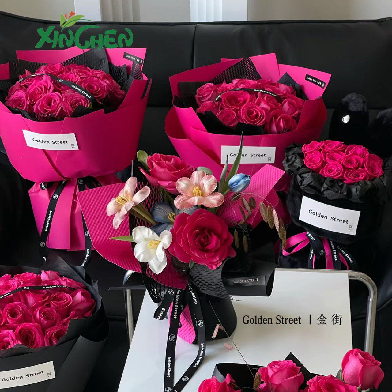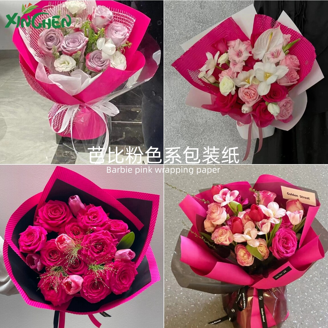 Барби розовая черная пленка цветущая бумага толстая водонепроницаемая цветочная упаковочная бумага. Запчащаяся PLEL PINT PINT PAYT PIRT DIY