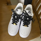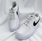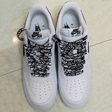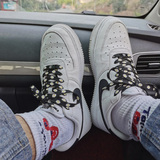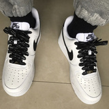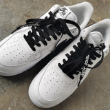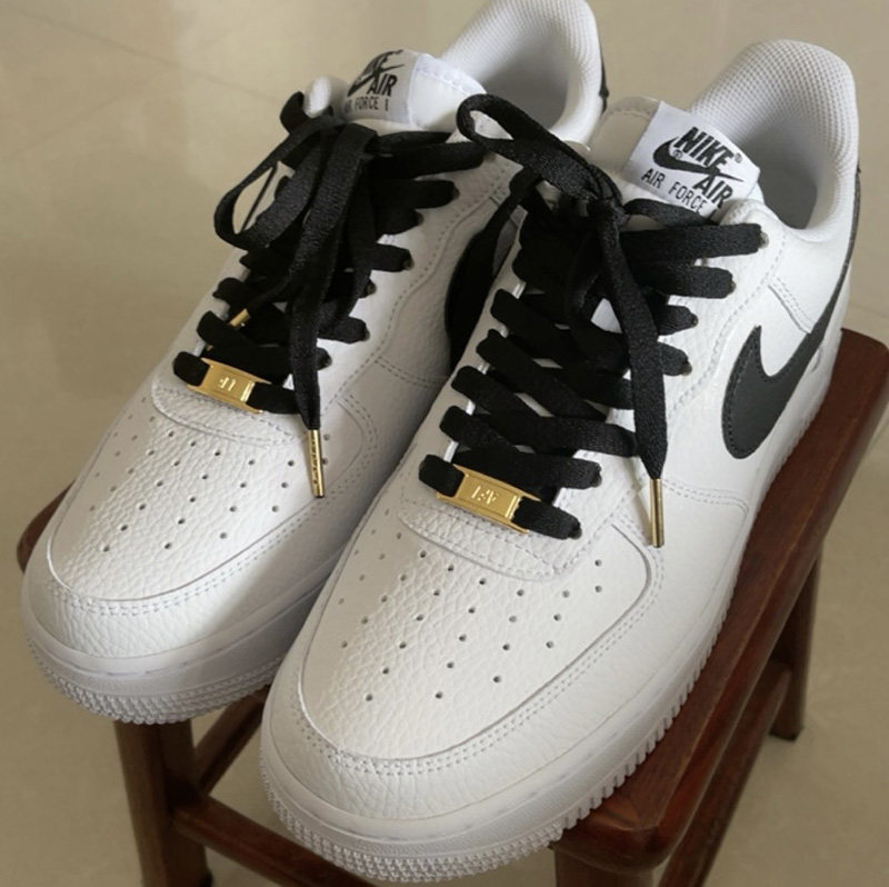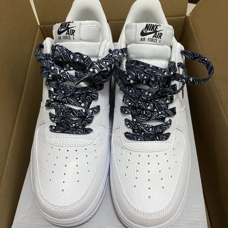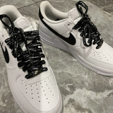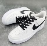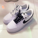 Адаптированные воздушные силы 1 Низко белая черная металлическая головка Черные шнурки, воздушные силы № 1 кешью и веревка для цветочных туфель