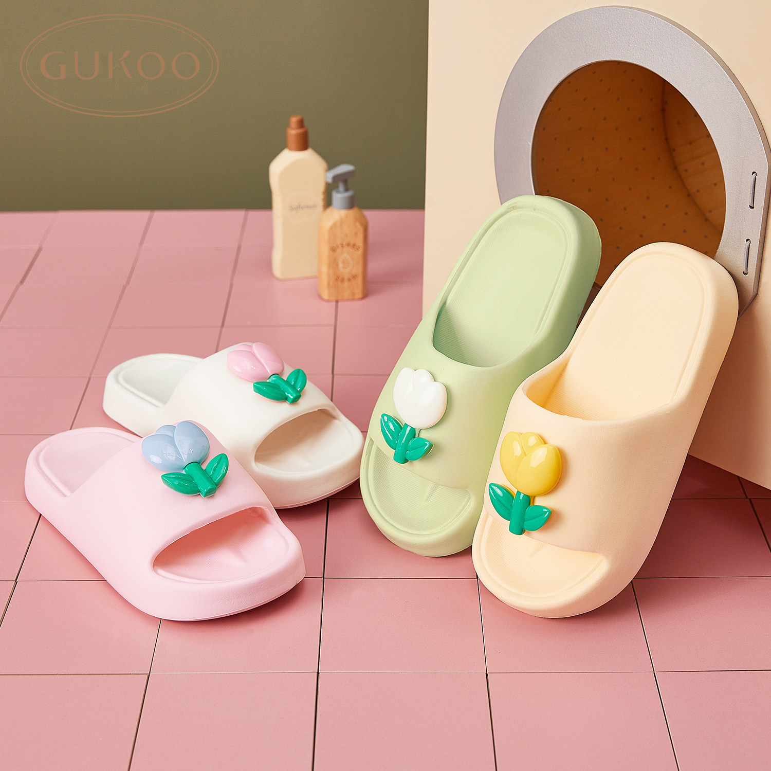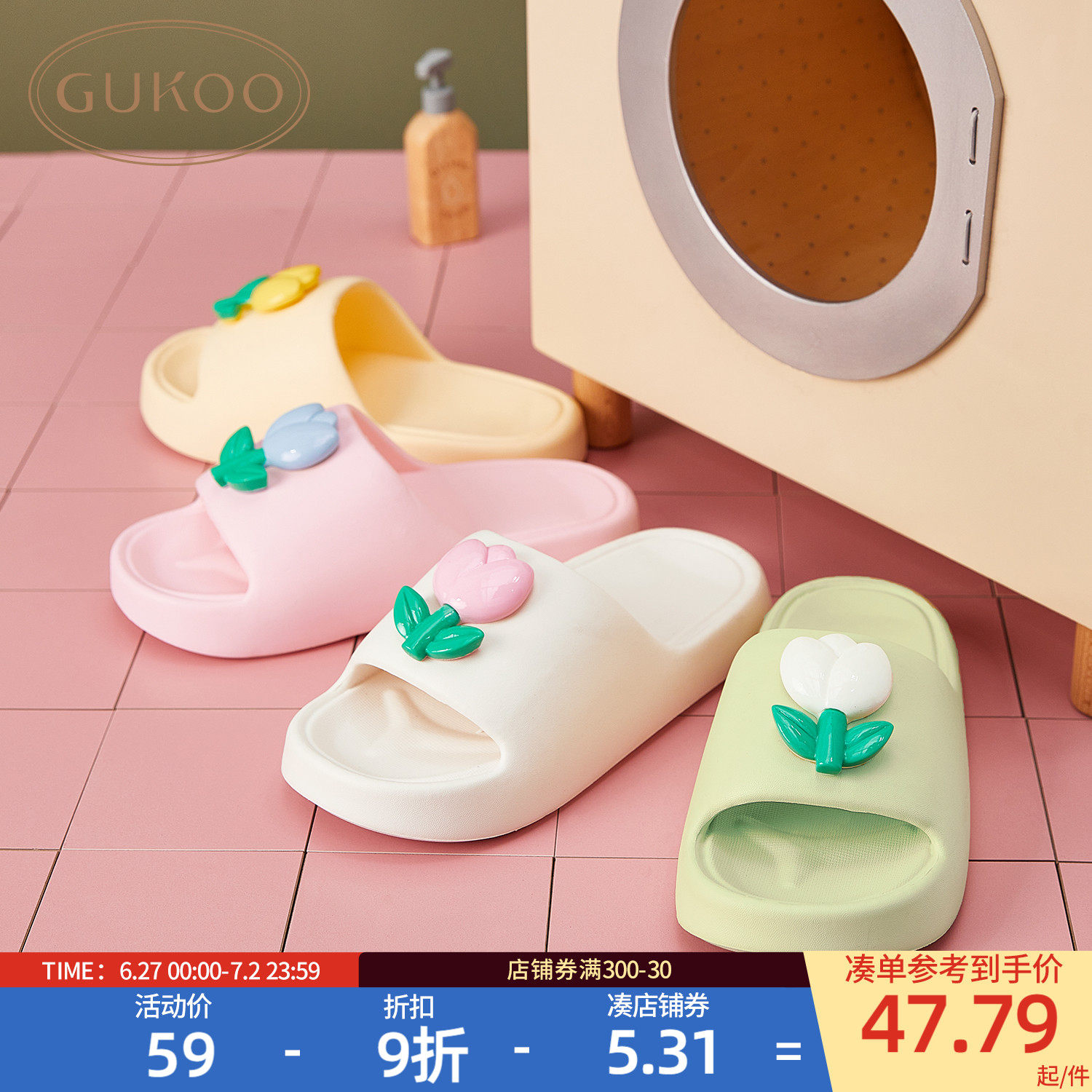 Gukoo/果壳 Тапочки, нескользящая обувь на платформе, слайдеры