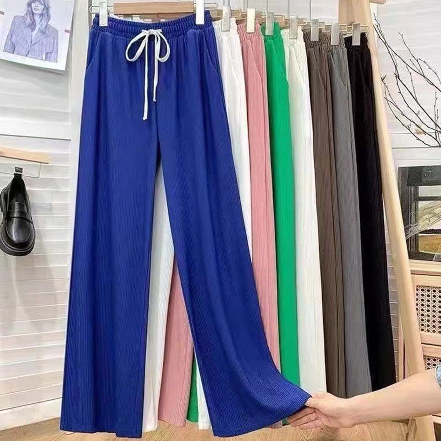Широкие брюки из ледяного шелка, прямые брюки с высокой талией, женские