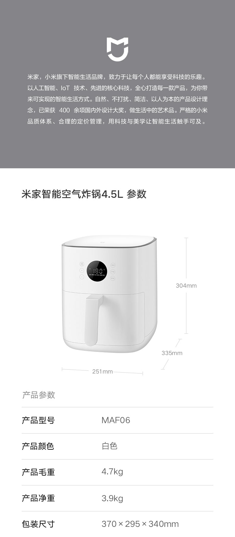 Семейство Xiaomi Mi Family Smart Air For Pot 4.5L Home Multi -функция, большая способность, большая свободная откидка. Автоматическая печь, электрическая жара