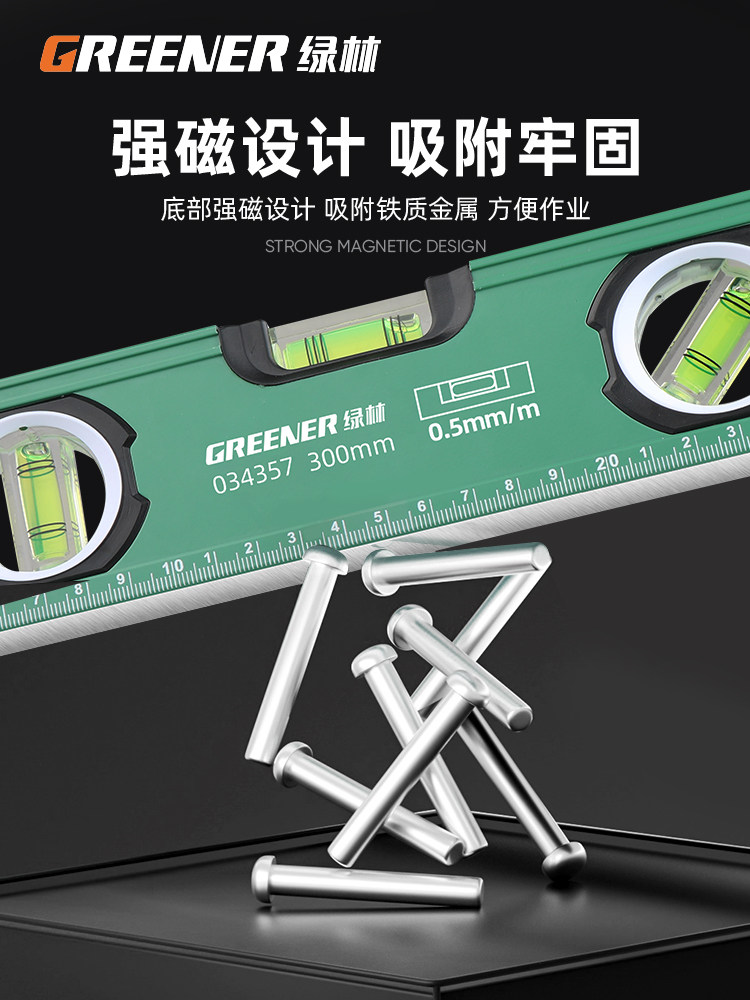 Правитель на уровне зеленого леса Сильный магнитный высокий характер полагается на линейку, чтобы предотвратить баланс падений, балансировка инструмента.