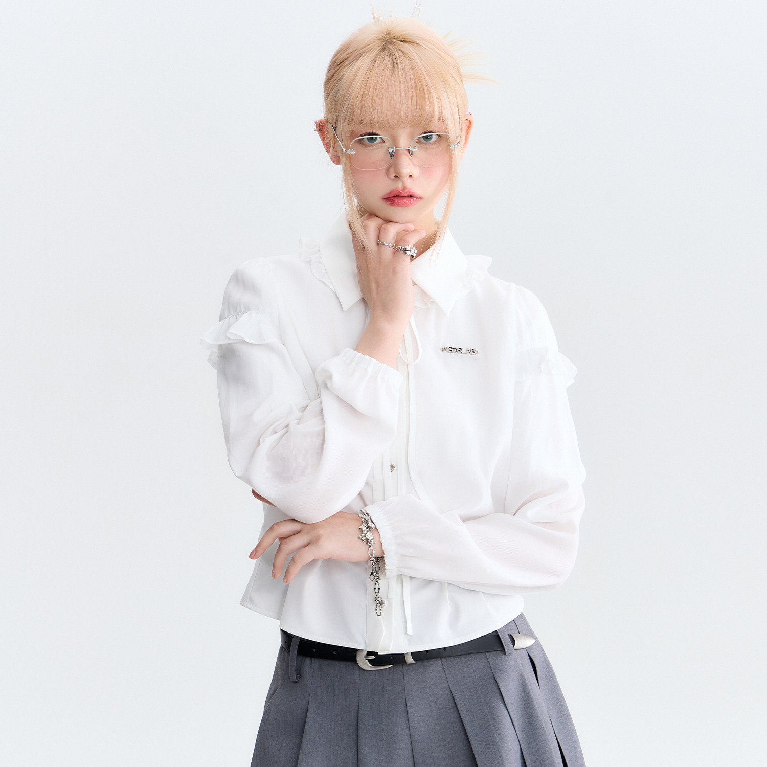 NS76 Оригинальный дизайнерский тонкий лонгслив, однотонная одежда для защиты от солнца с круглым воротником, летняя куртка, рукава фонарики