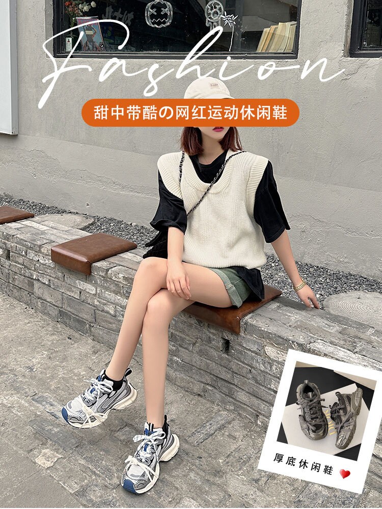 Женские туфли для папы в подиумном стиле, весна 2023, новинка 3XL, повседневная спортивная обувь на толстой подошве, высокая версия Putian
