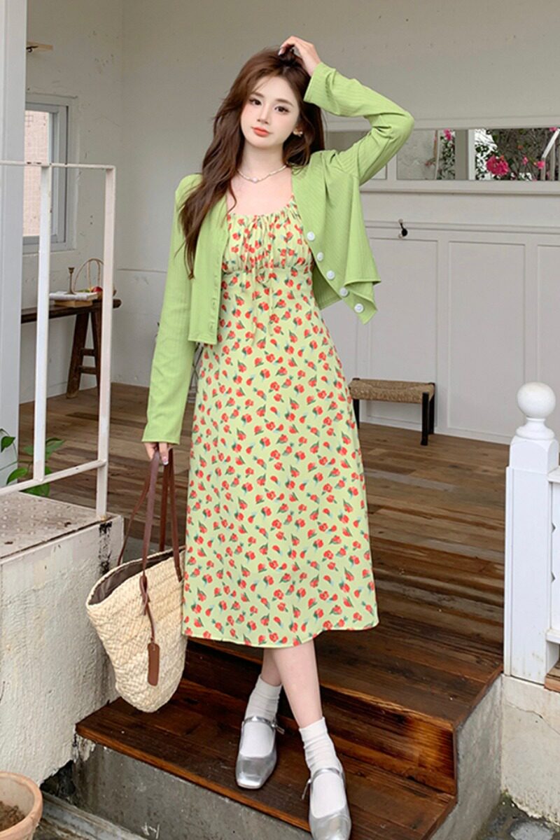 Летнее платье, юбка, лонгслив, кардиган, комплект, большой размер, в стиле Шанель, по фигуре, в цветочек