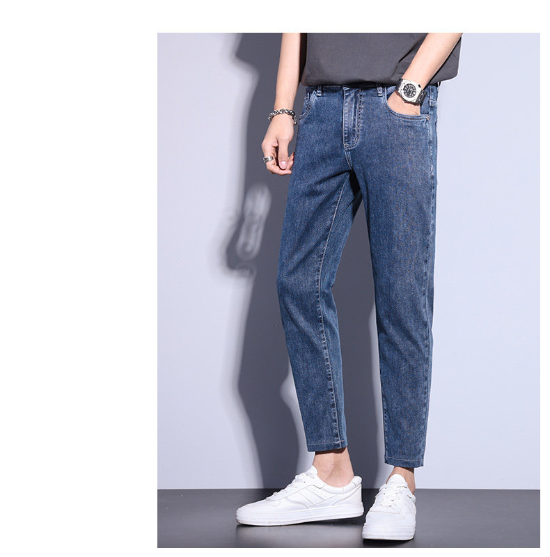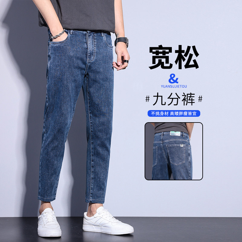 Летние тонкие прямые свободные джинсы, мужские весенние повседневные брюки для отдыха, свободный прямой крой