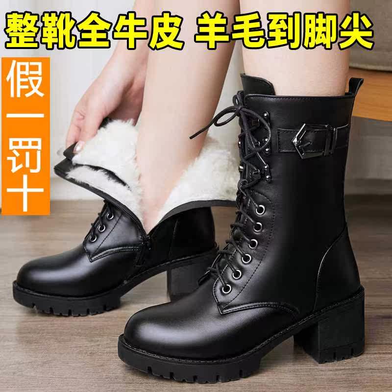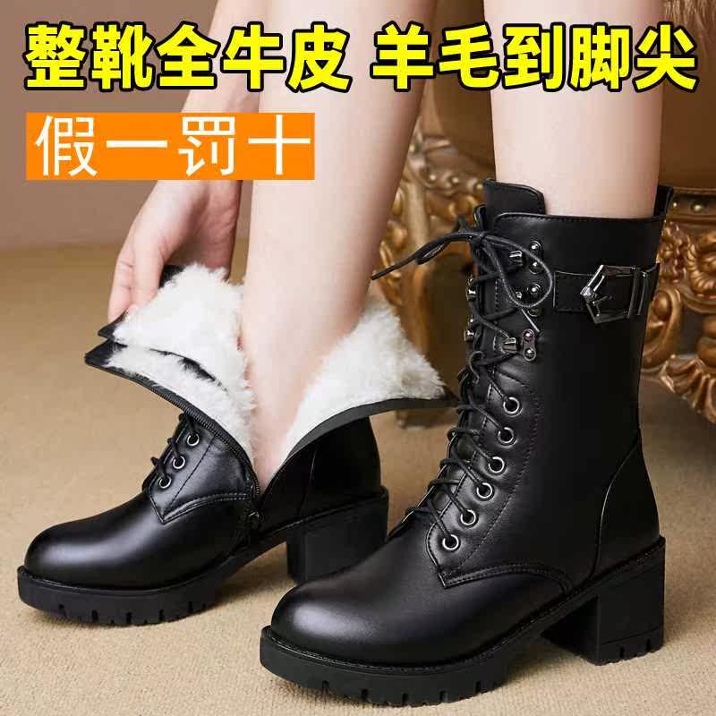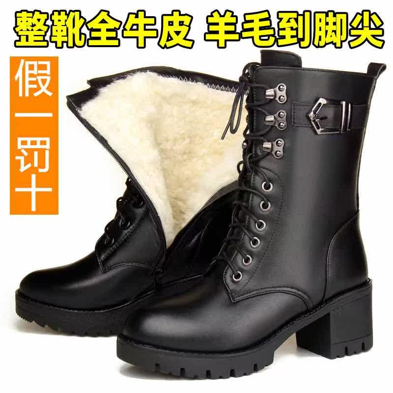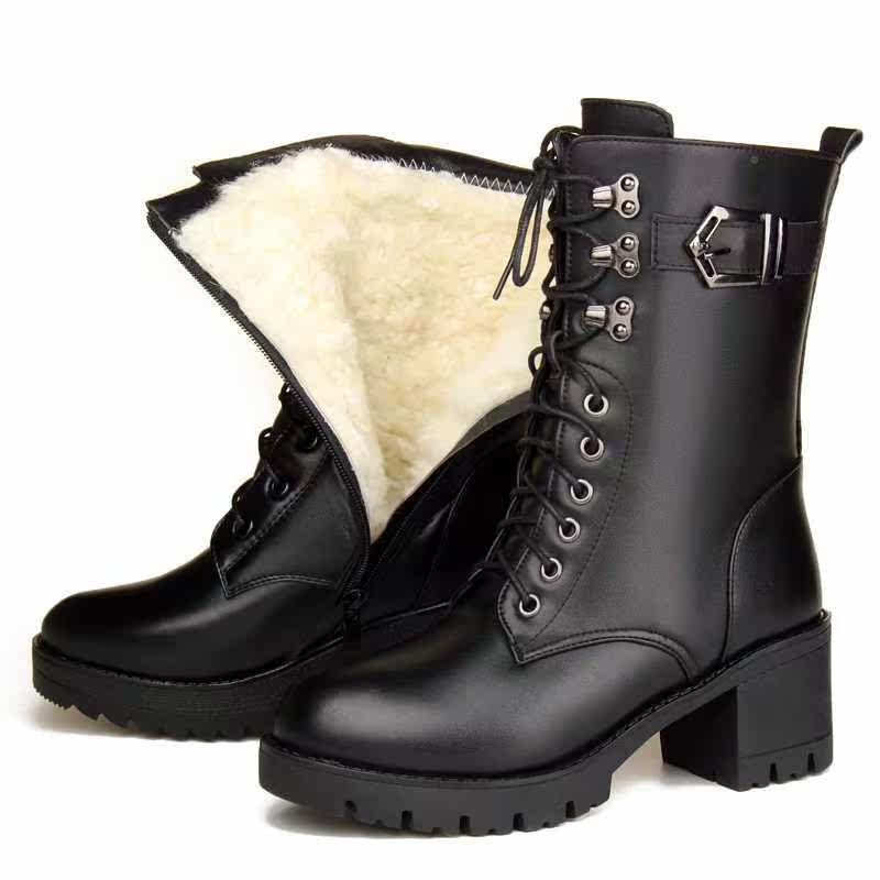 . Новый аутентичный крупный рогатый скот зима Martin Boots Женская шерстяная шерстяная пальто и ватные туфли, yingplen Новые средние ботинки