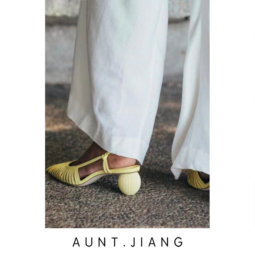匠婶 2025 весна и лето, новый стиль, французские нишевые босоножки на толстом каблуке с острым носком и ремешком сзади, женские босоножки на шариковом каблуке