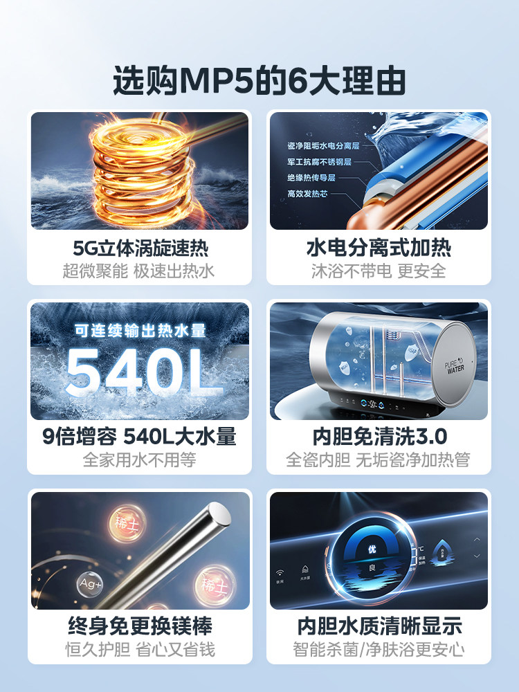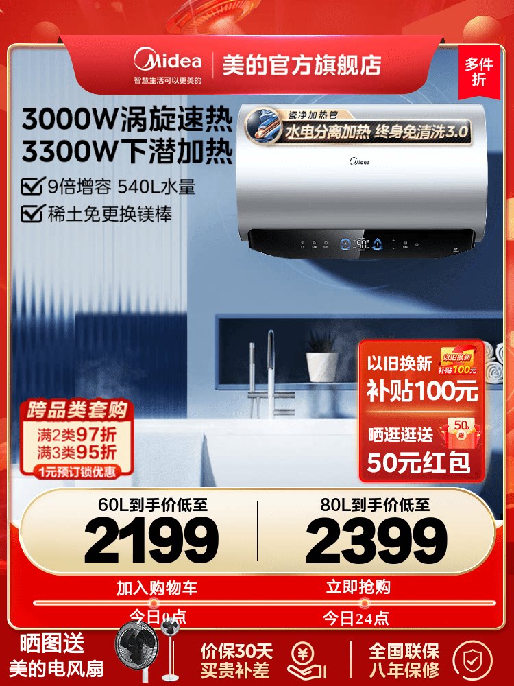 Midea Electric Water Geatuter Home 60 -Liter 80 Водяной хранение горячего туалетного водонагревателя Первый энергетический магний MP5 MP5