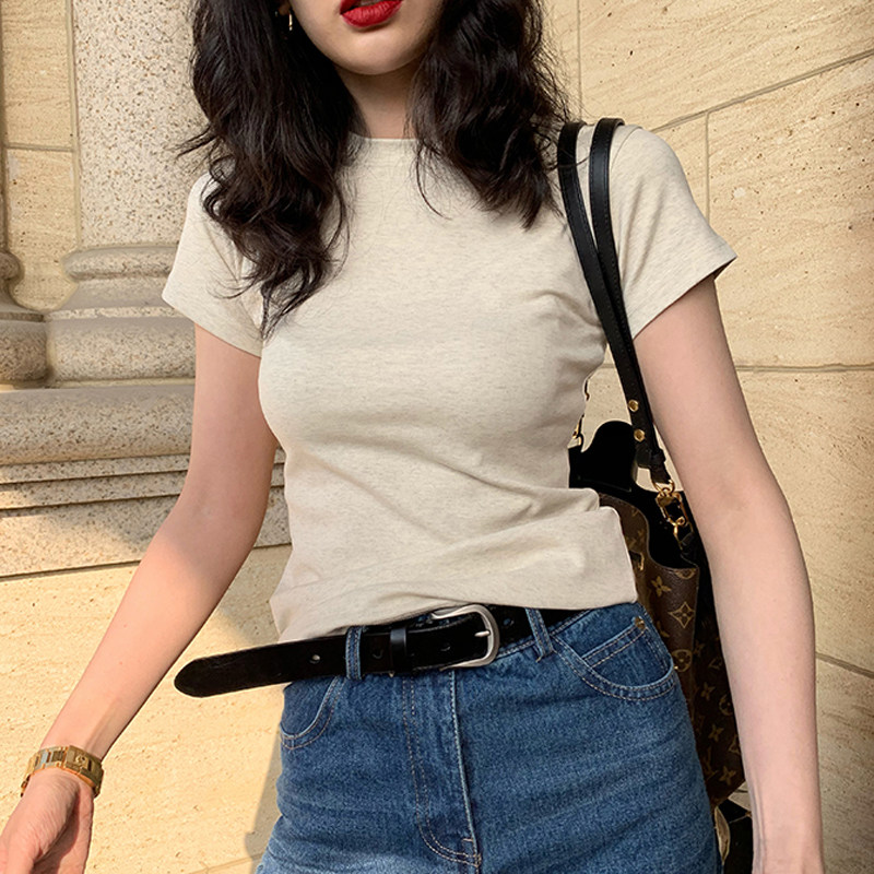 Хлопковая летняя приталенная базовая футболка с коротким рукавом, в американском стиле, 2024 года