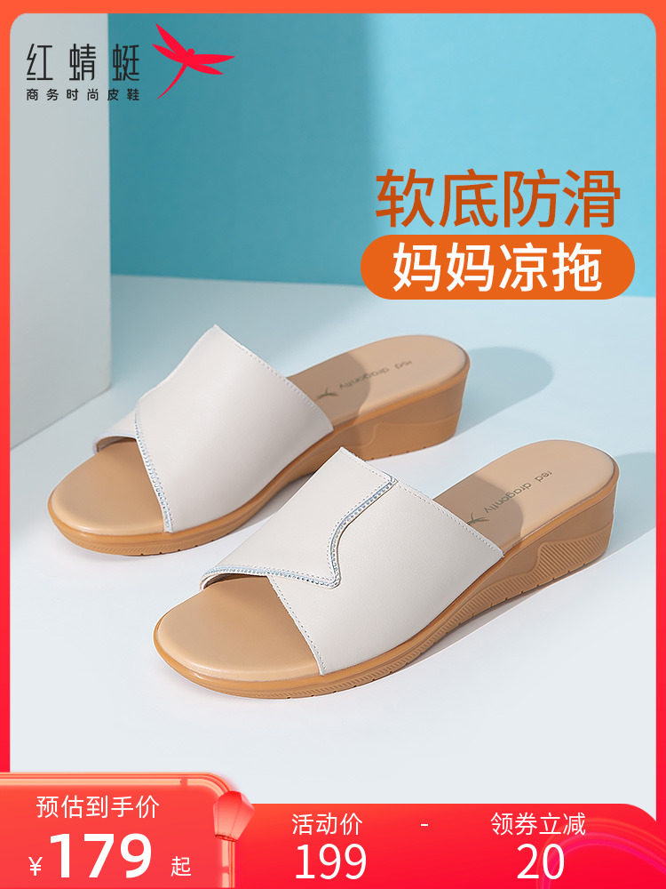 Слайдеры, тапочки, летняя обувь на платформе, комфортные сандалии для матери, из натуральной кожи, мягкая подошва, для среднего возраста