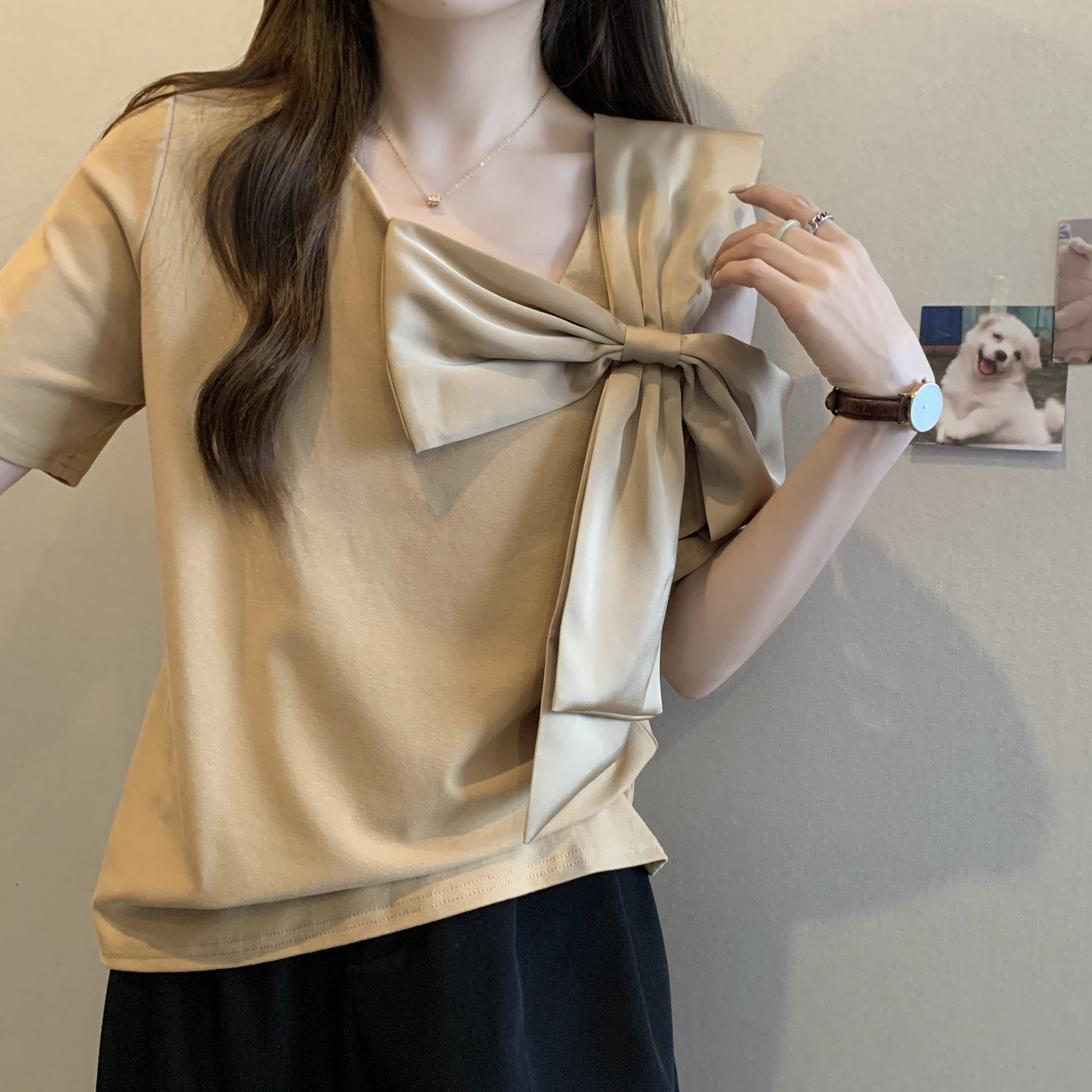 | Цвет: | Футболка цвета хаки [популярные топы 2023 года/элитные/сладкие/тонкие/соленые/прикрывающие тело/ретро/французские/тонкие/уникальные и уникальные/толстые топы мм, закрывающие живот, чтобы скрыть плоть/универсальные/свободные/топы для маленьких женщин], Черная модная элитная футболка, в западном стиле, большой размер |