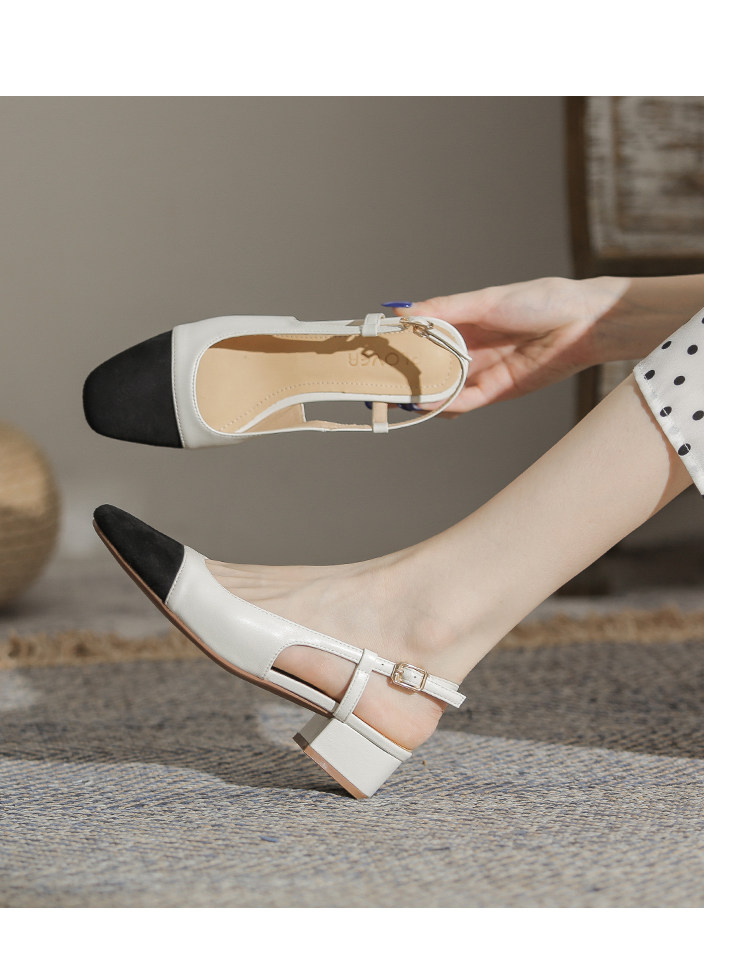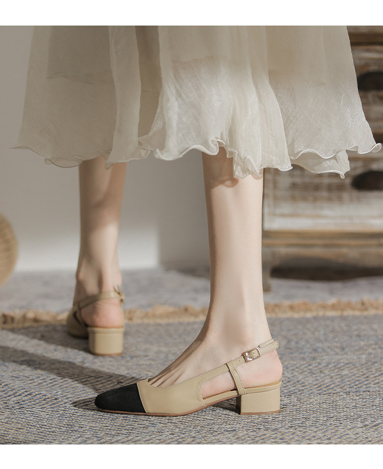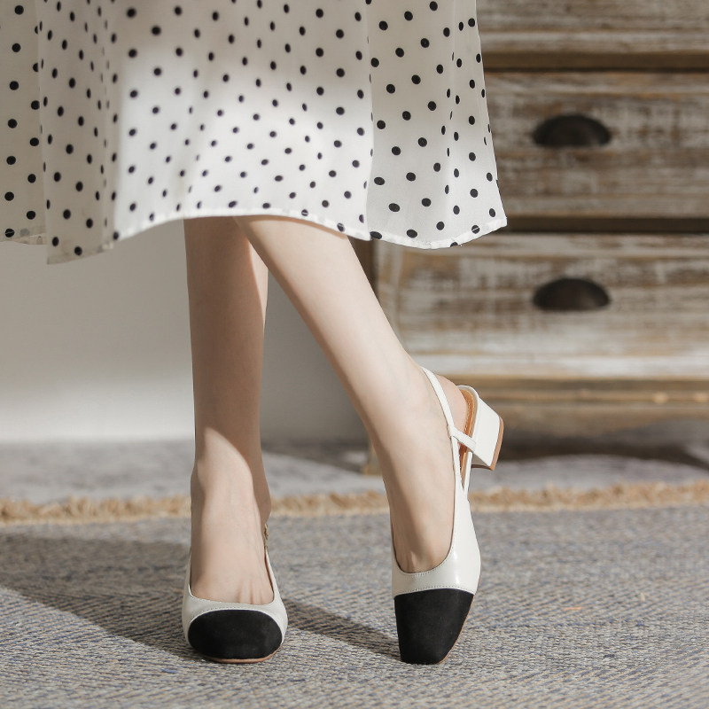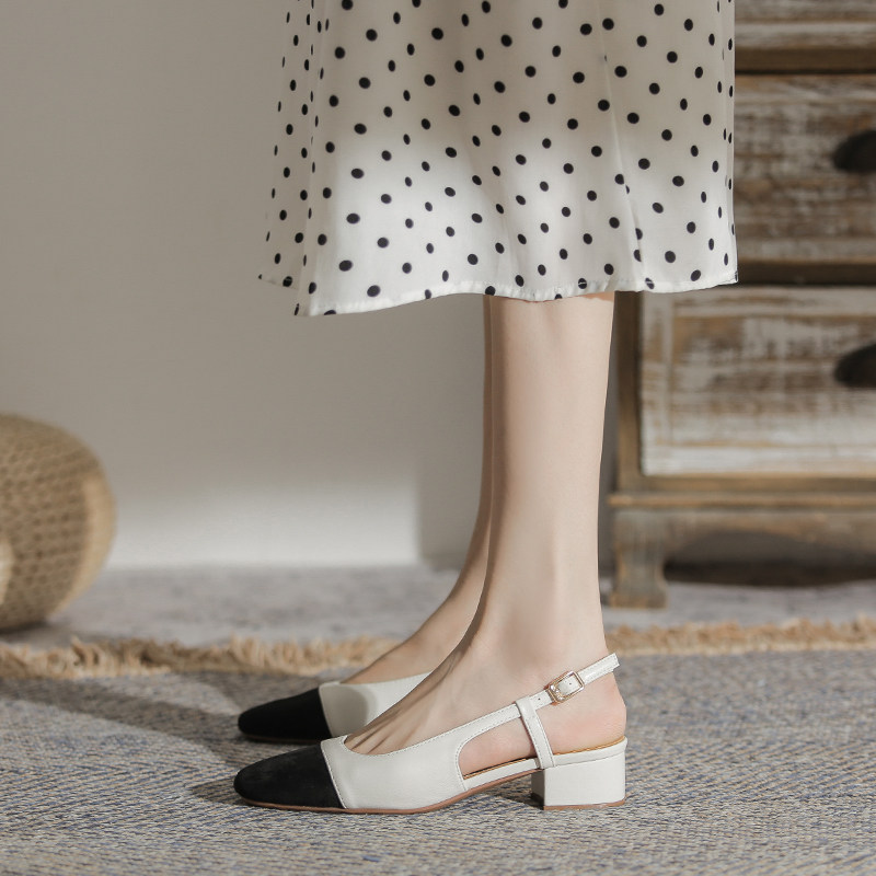 Женские маленькие ароматные босоножки на толстом каблуке из натуральной кожи. Лето 2026, новый стиль, туфли на высоком каблуке с квадратным носком сзади и квадратным носком сзади.