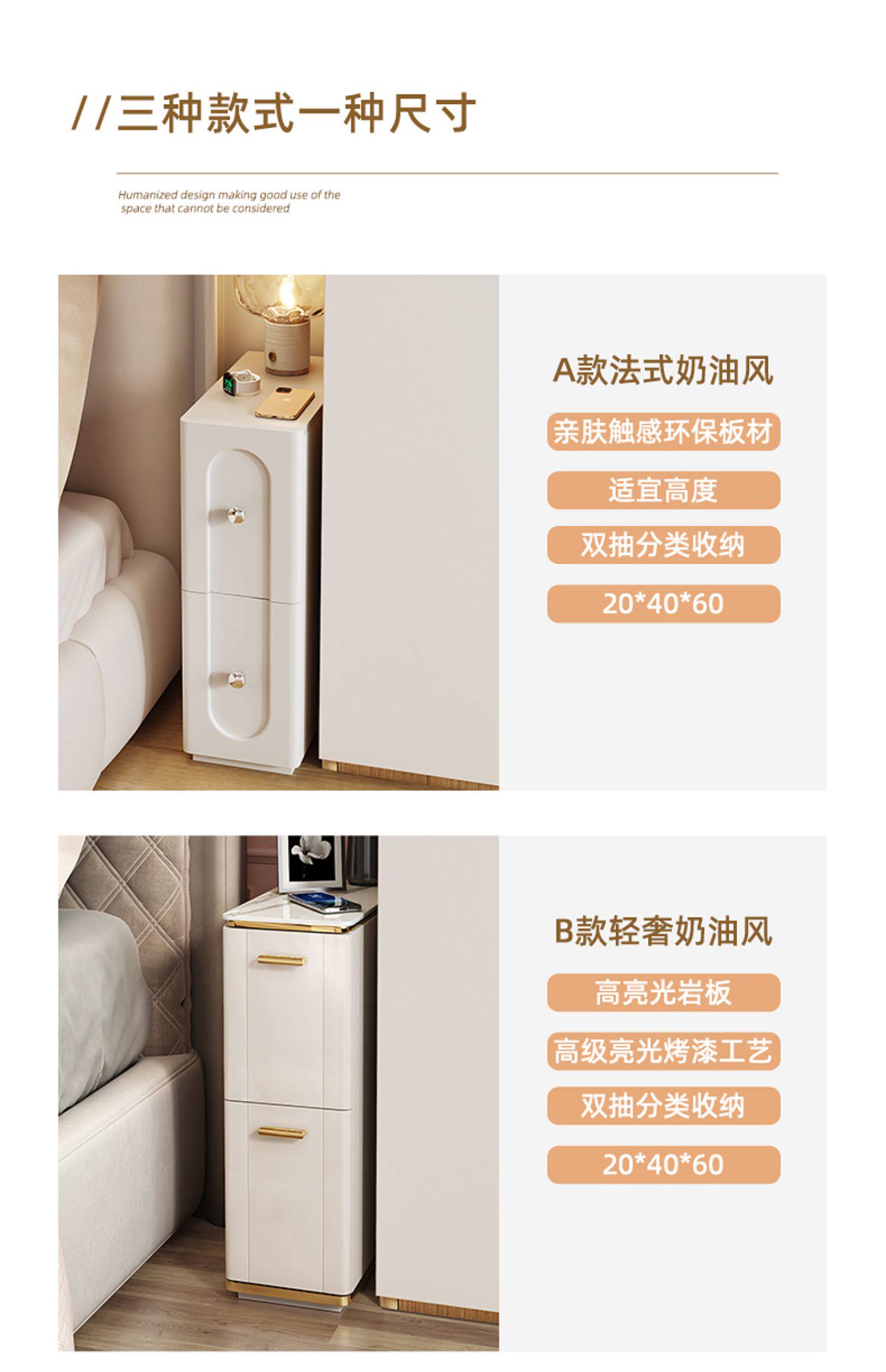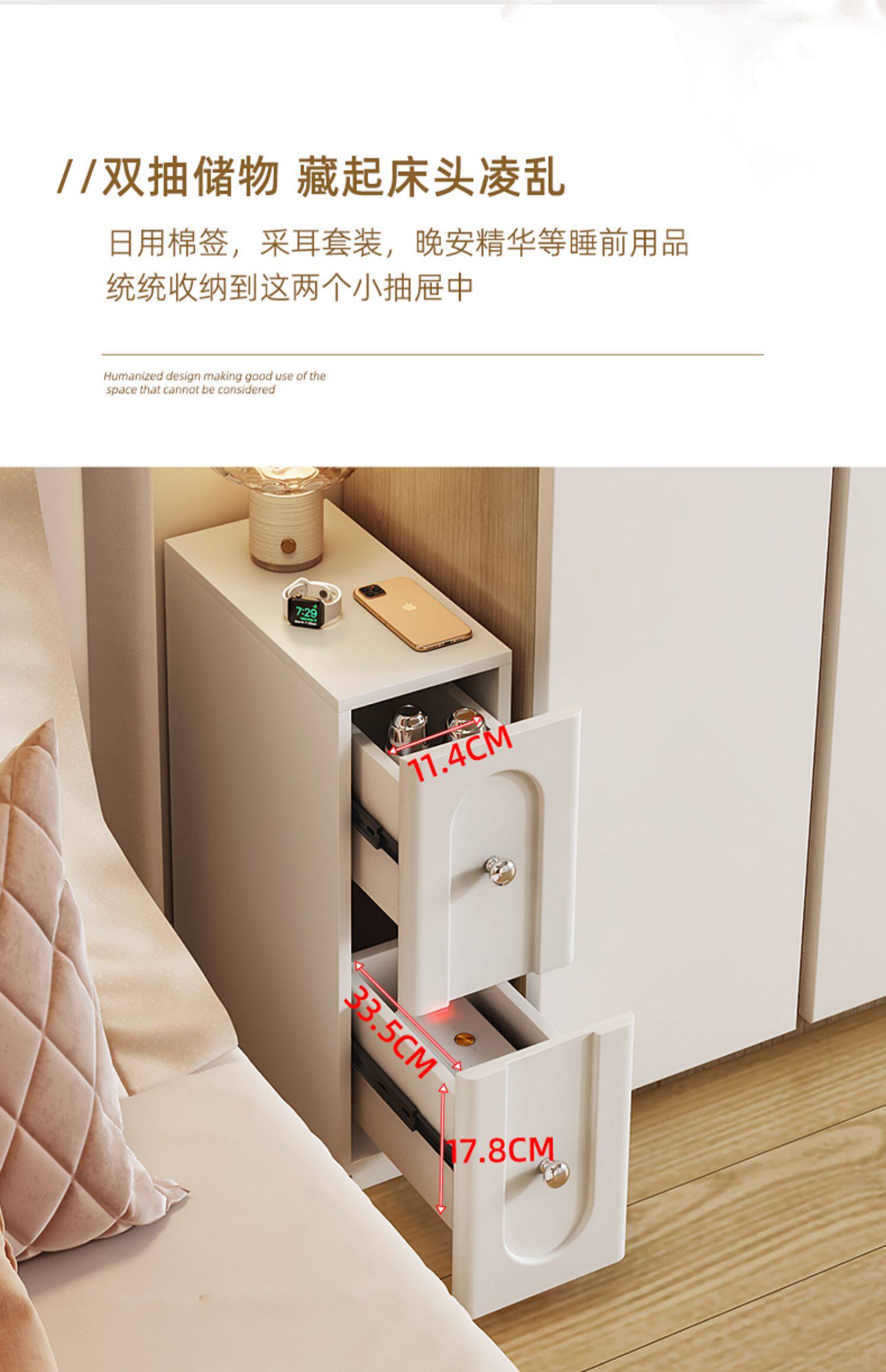 Янгинг кремовый стиль ультра -ароматный прикроватный шкаф маленький 20 см спальня мини -кроватя
