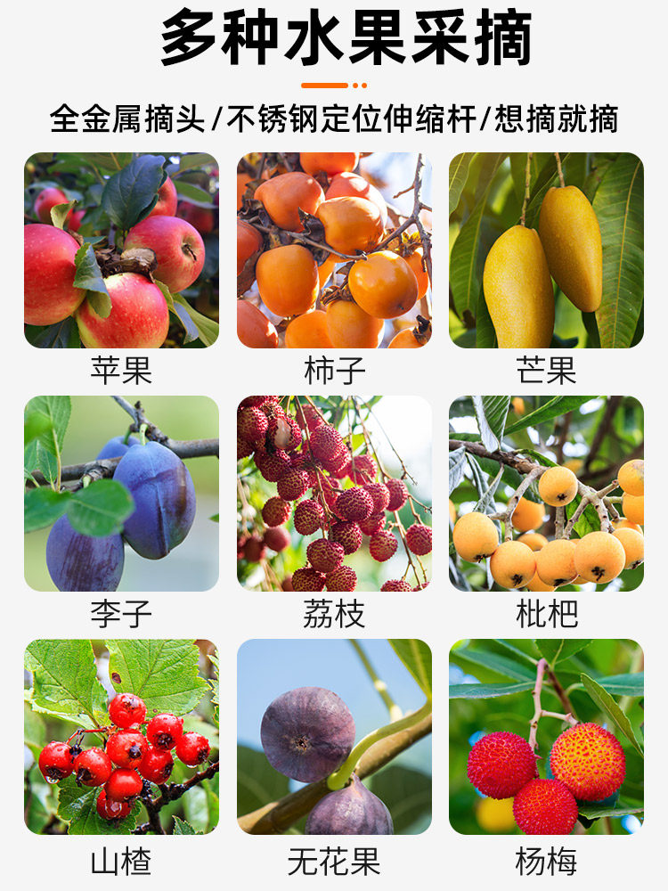 Фруктовый сбор артефакт Телескопический стержень локват, выбирая хурмы китайская сеть кармана яблоко Longan Sour Jujube Abricot Fruit Fruit Fruit