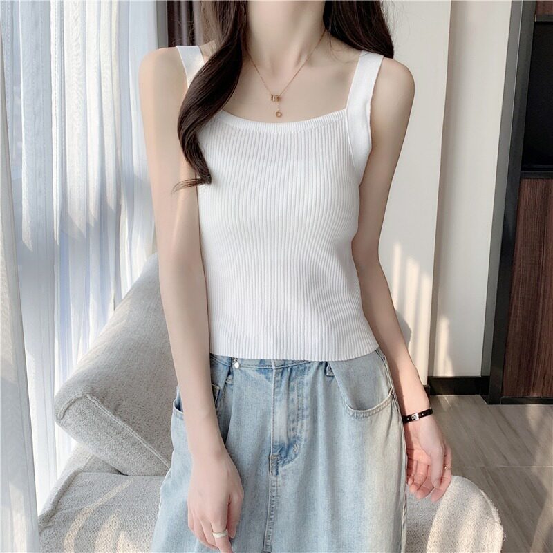 Белая трикотажная модная базовая дизайнерская майка топ, в западном стиле, тренд сезона