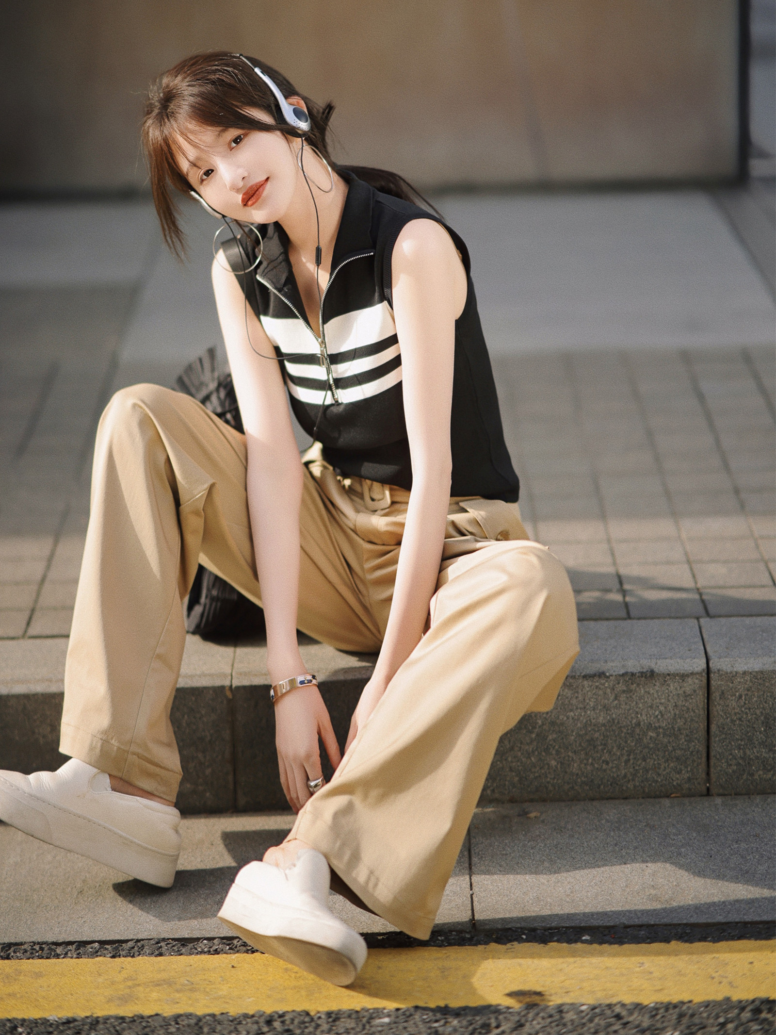 赵大喜 Самодельная [готовая продукция] Серия личной одежды с уксусной кислотой|Свободный жилет контрастного цвета Новый универсальный топ без рукавов