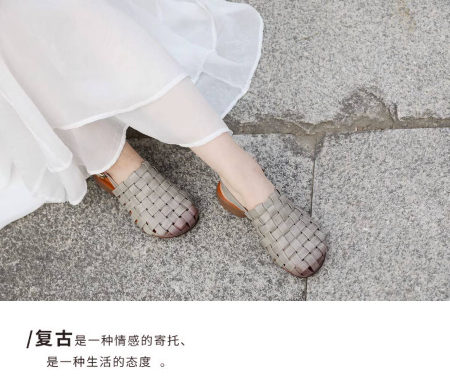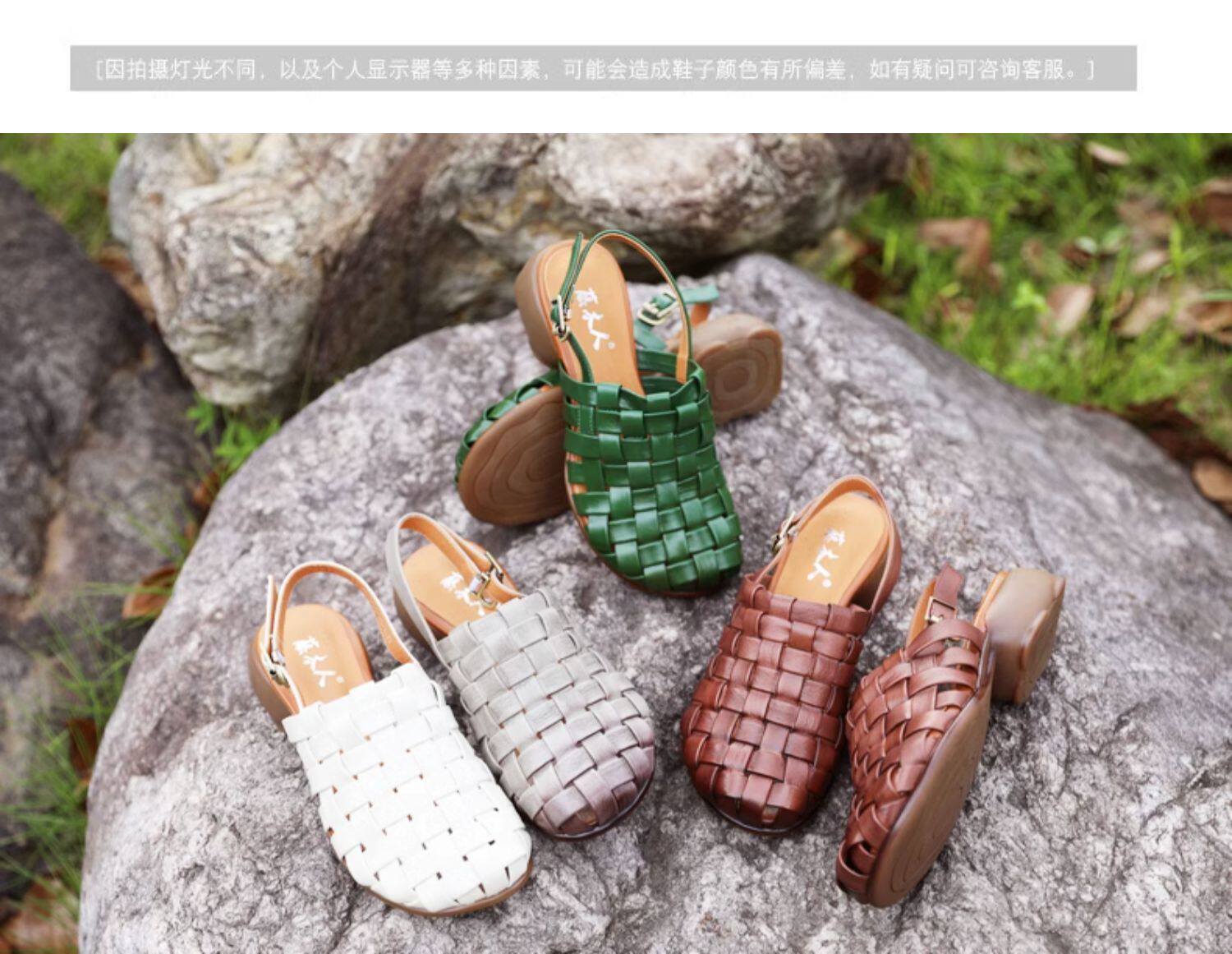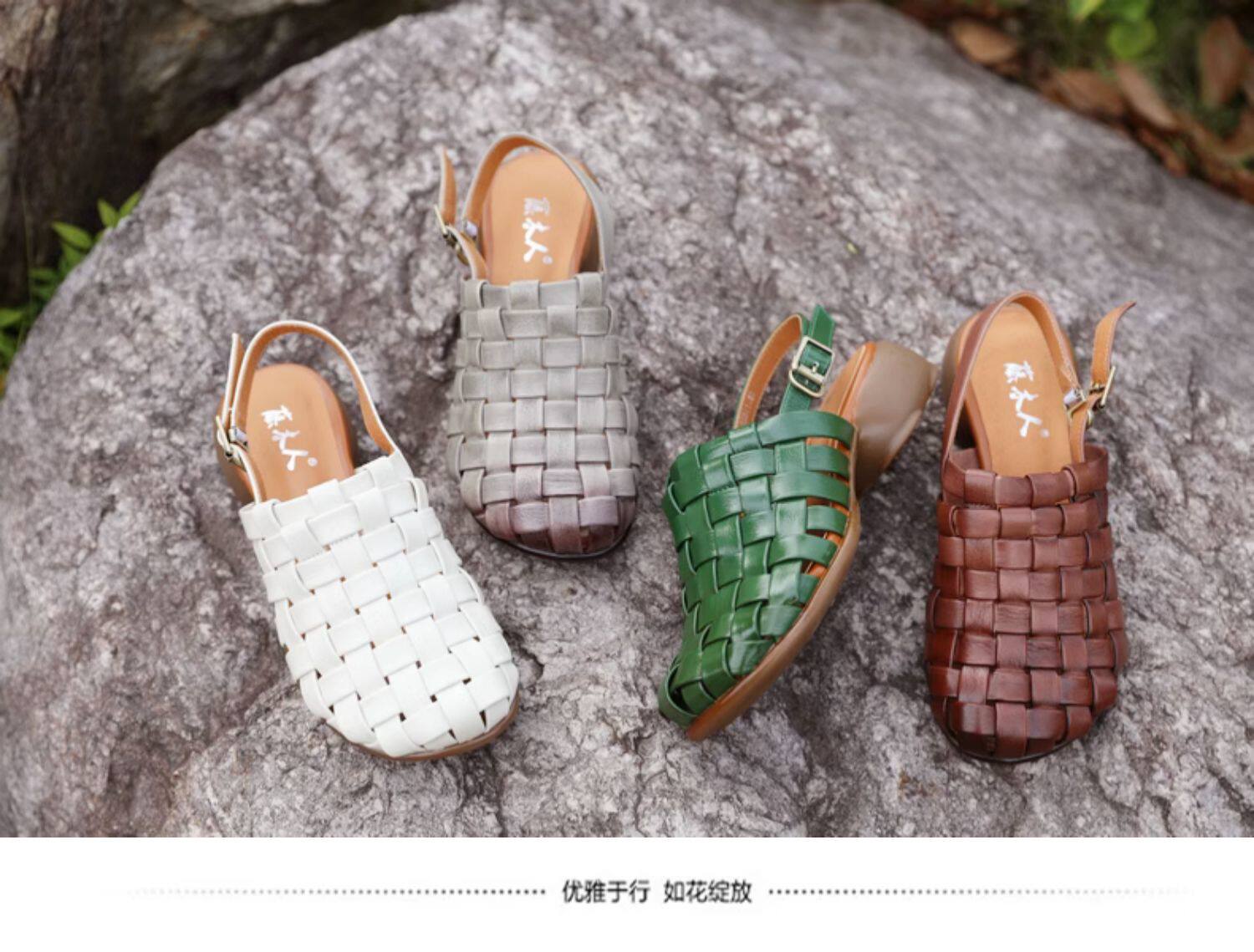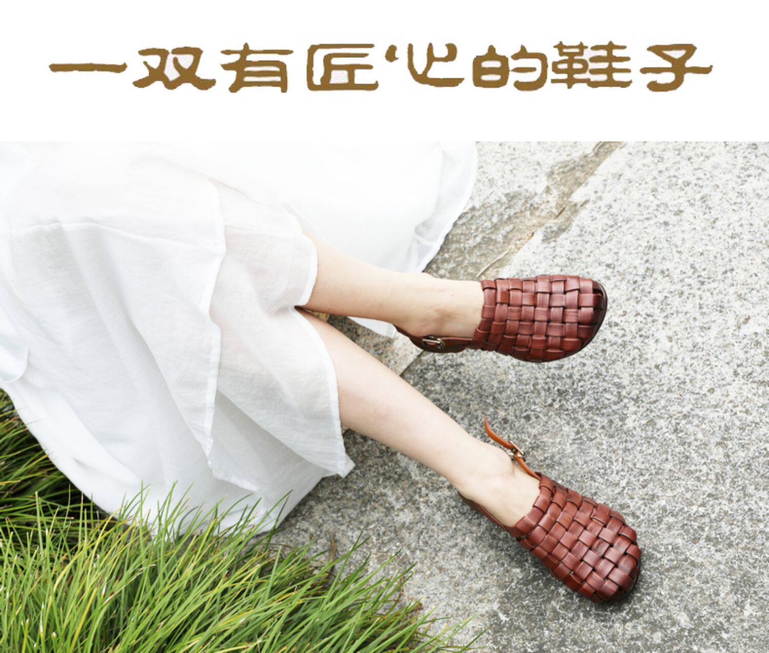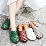 Плетеные летние босоножки, китайский стиль, мягкая подошва, из натуральной кожи