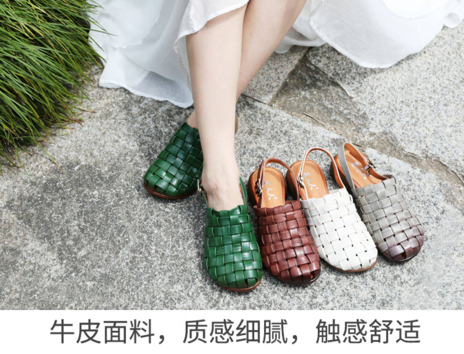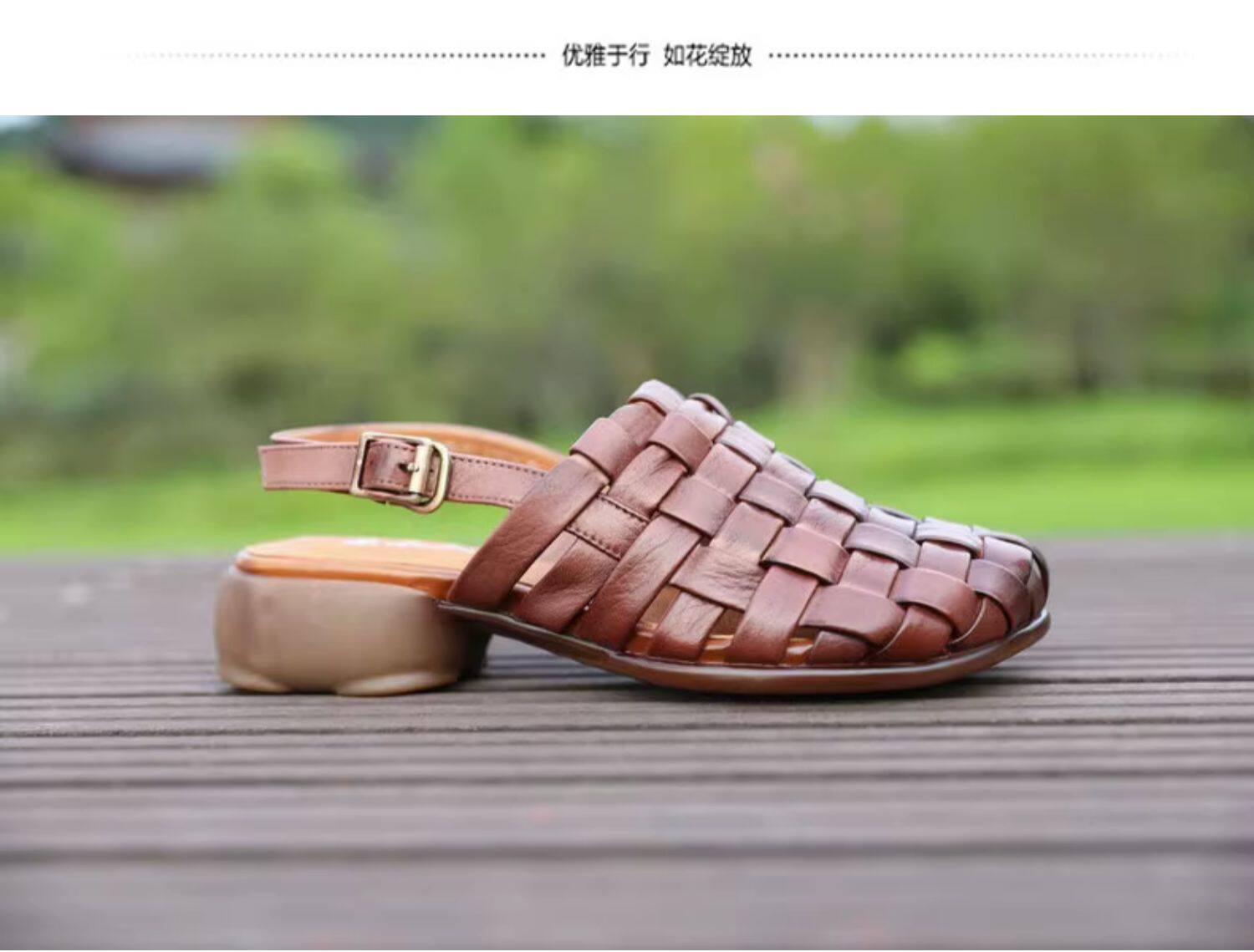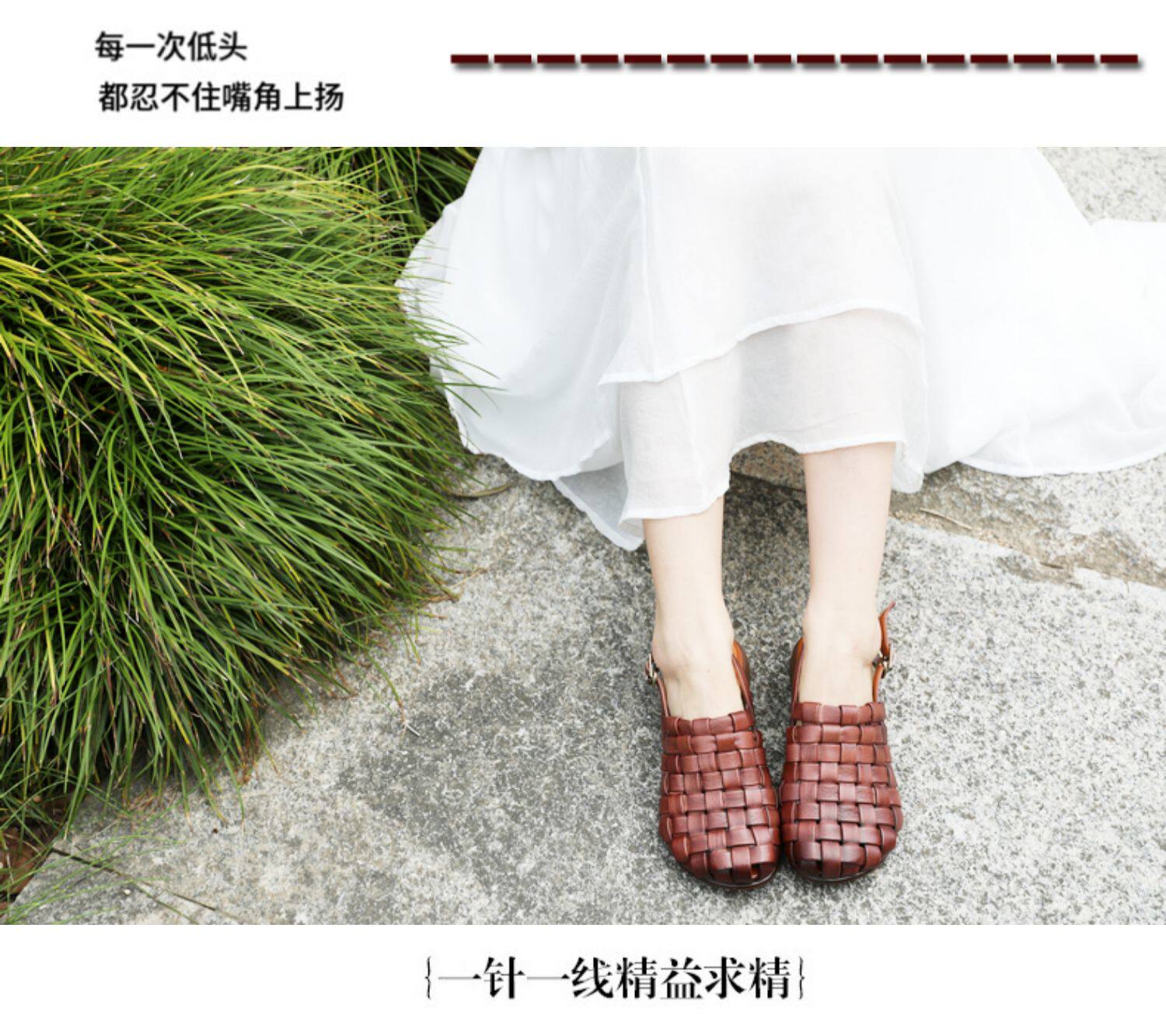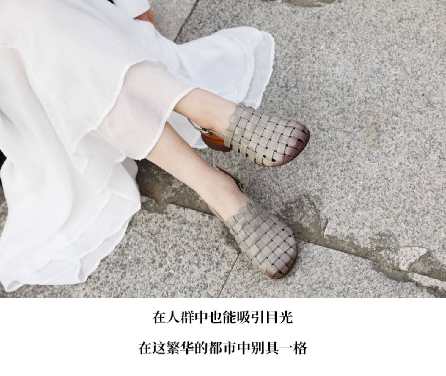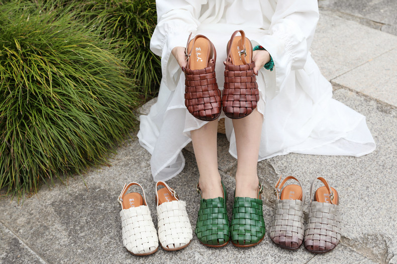 Плетеные летние босоножки, китайский стиль, мягкая подошва, из натуральной кожи