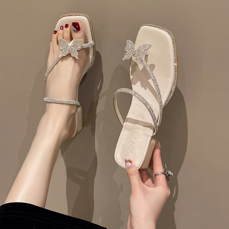 Сандалии, летняя сетчатая обувь с бантиком на высоком каблуке, 2024 года, популярно в интернете, французский стиль