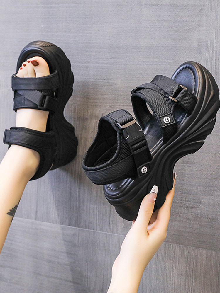 Летние сандалии, модная универсальная спортивная нескользящая высокая обувь на платформе, 2024 года, городской стиль