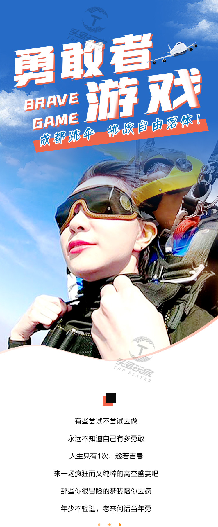 | Тип пакета: | Чэнду Лунцюань: прыжок с парашютом на 4300 м + обучение тренера, Прыжки с парашютом + фотография с рук, Прыжки с парашютом + сторонняя фотосъемка, Прыжки с парашютом + портативное устройство + третье лицо |