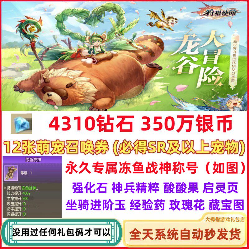 Подарочный пакет мобильных игр Подарки Полный комплект искупления код CDK 4310 Diamond Pet Summon замороженная рыба -война