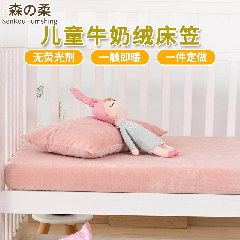 Кроватка, простыня, утепленное коралловое покрывало