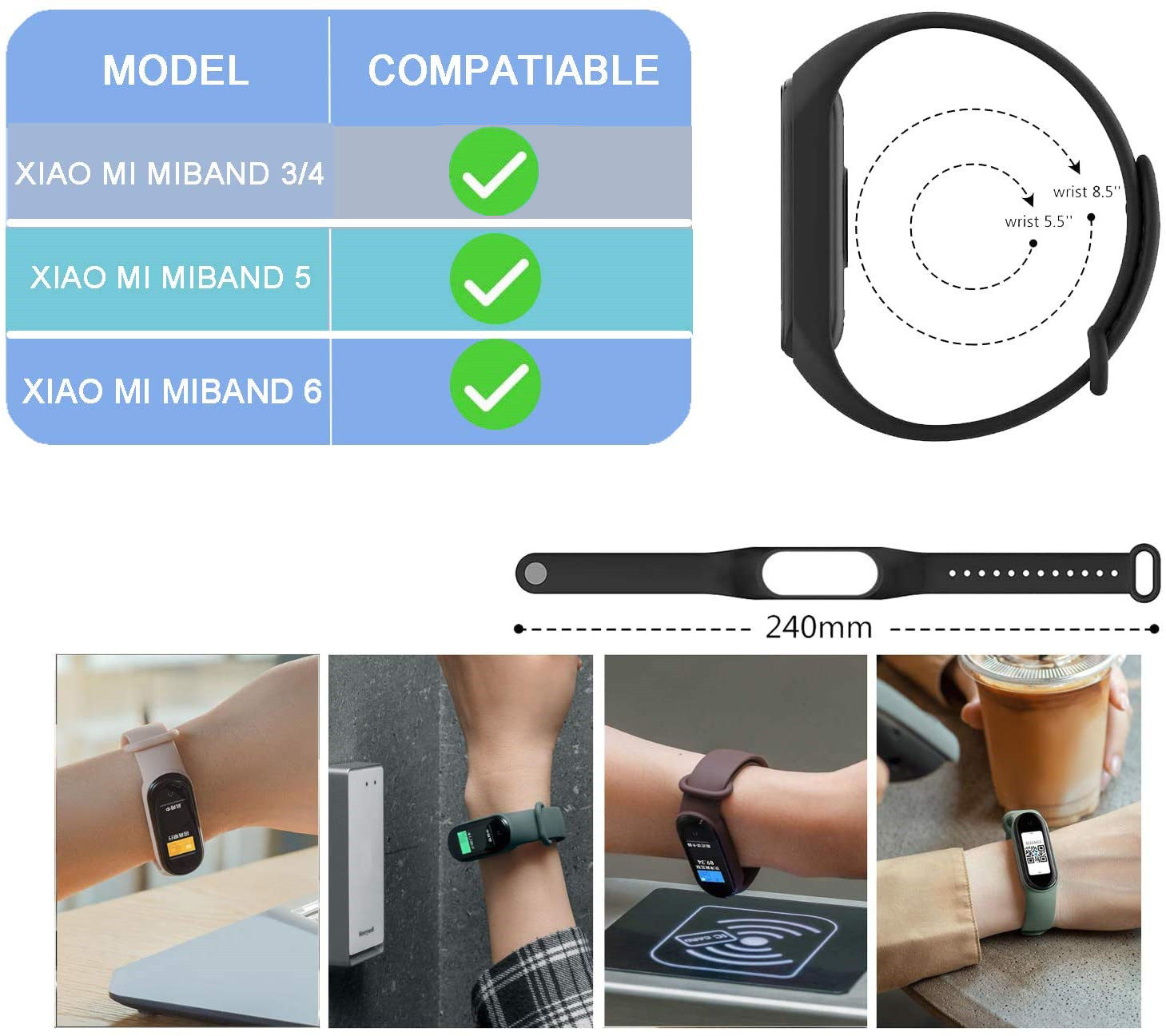 2. Носимый запястье/ремешок для запястья для xiaomi mi band 3/4/5/6