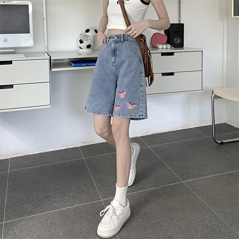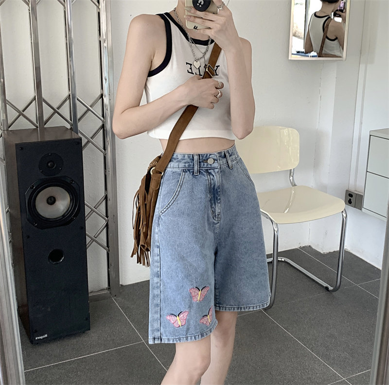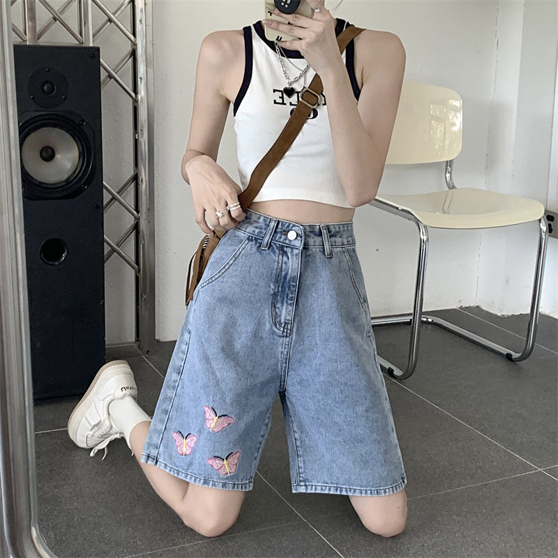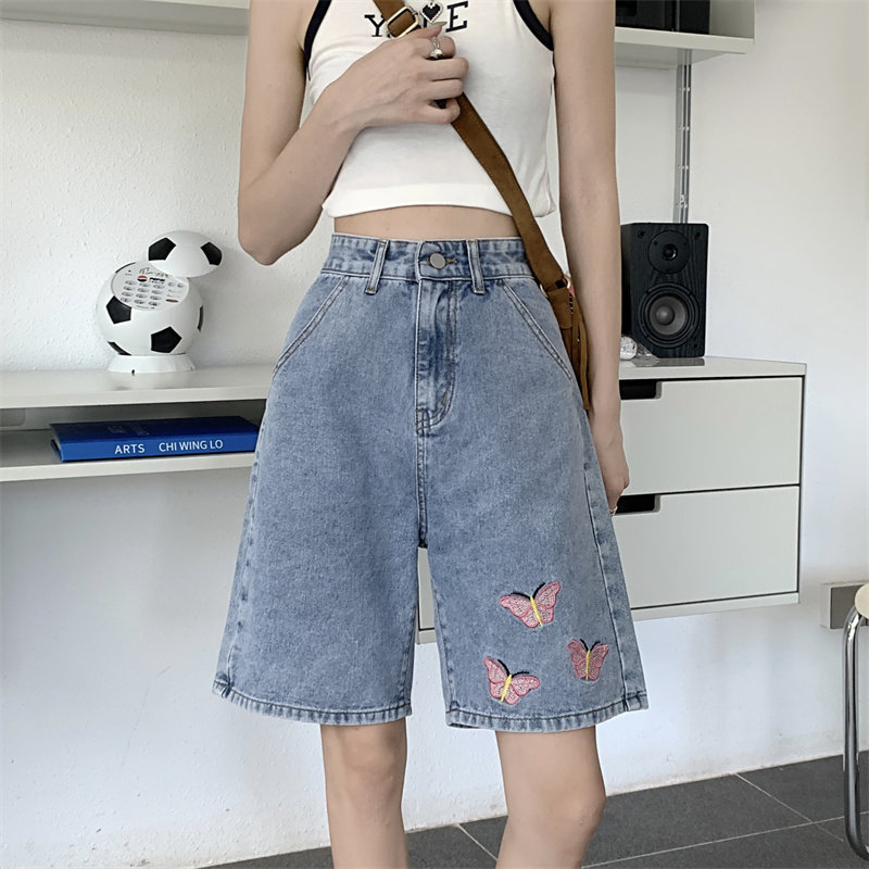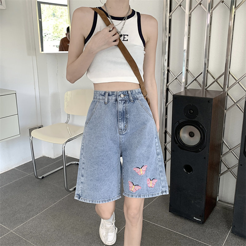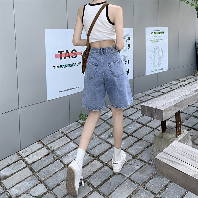 Джинсовая юбка, летние шорты, брендовые ретро штаны для отдыха, высокая талия, большой размер, свободный прямой крой, оверсайз