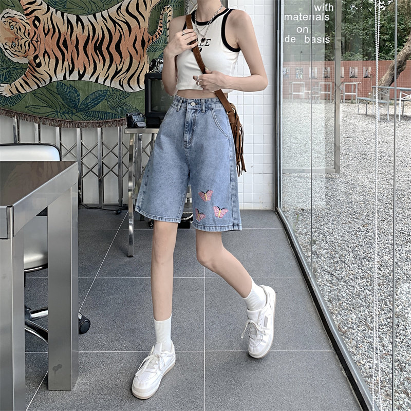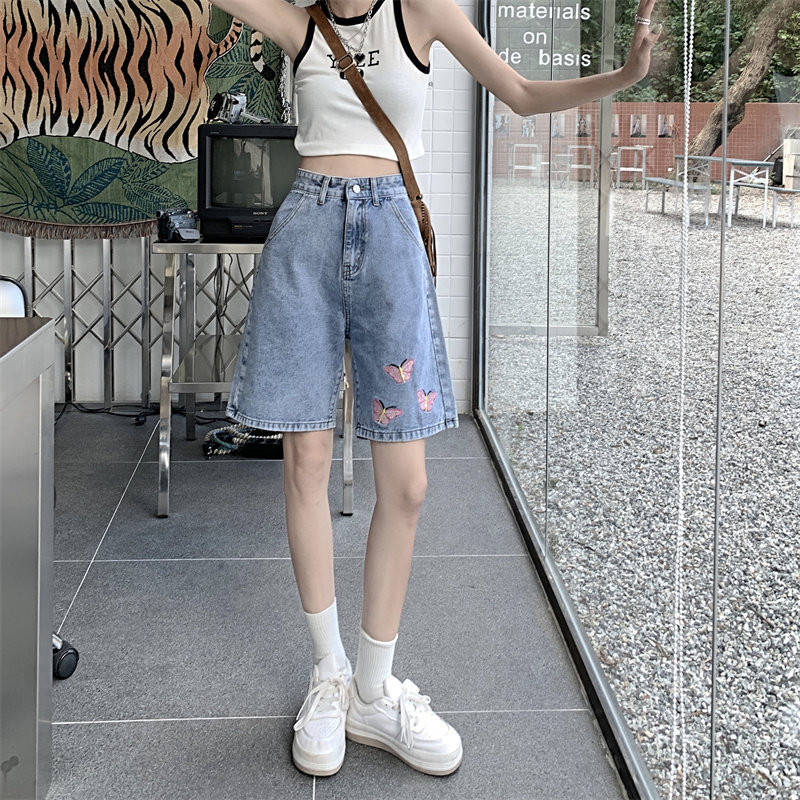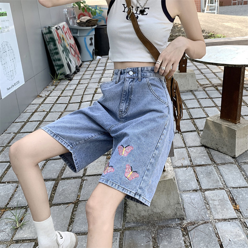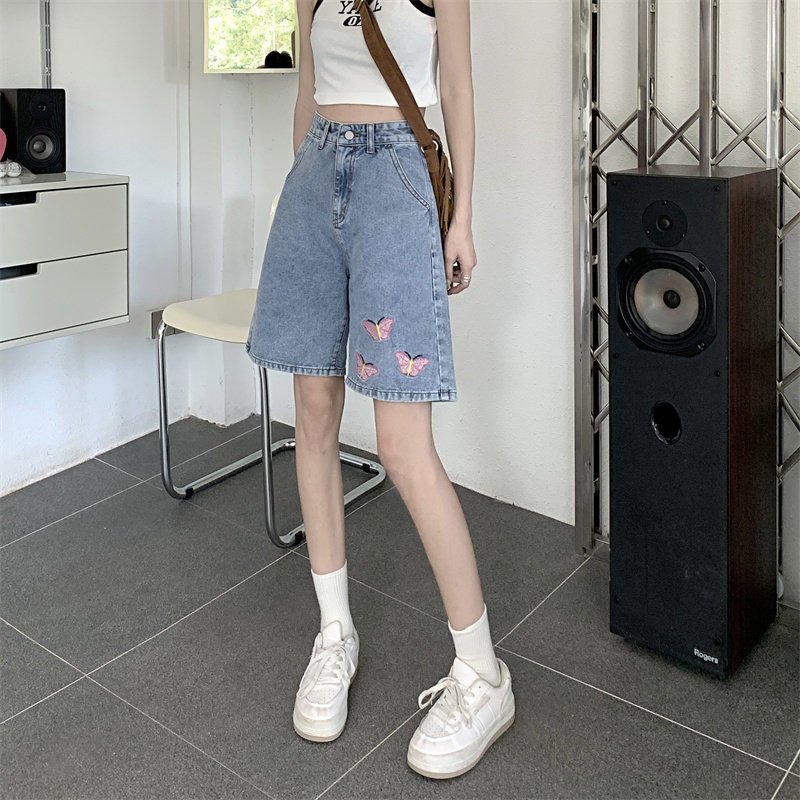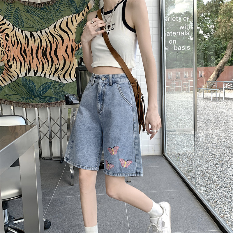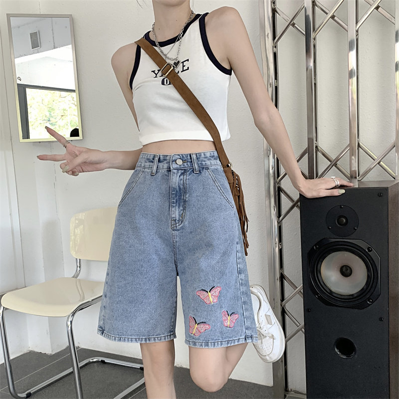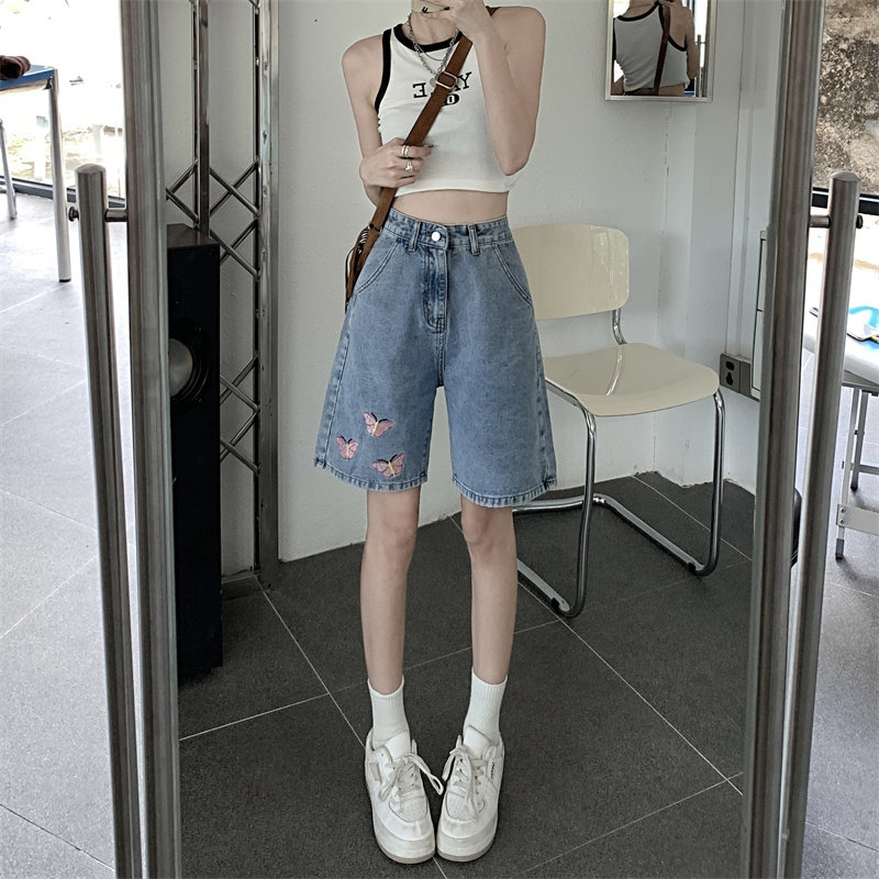 Джинсовая юбка, летние шорты, брендовые ретро штаны для отдыха, высокая талия, большой размер, свободный прямой крой, оверсайз