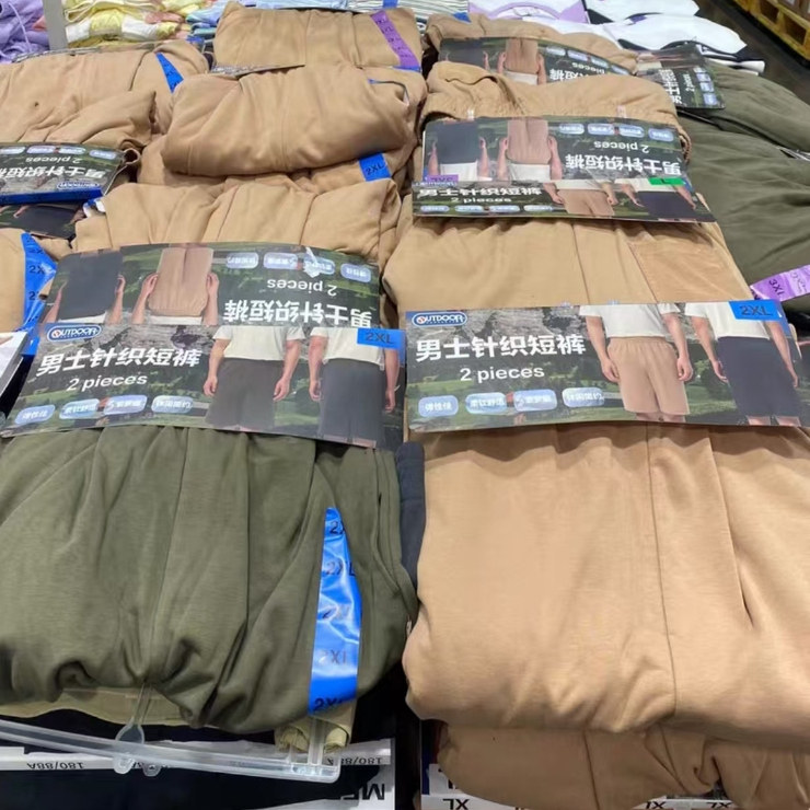 Сэм покупает наружные мужские вязаные шорты в спортивных повседневных штанах.