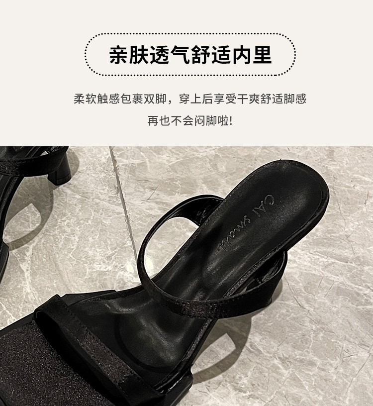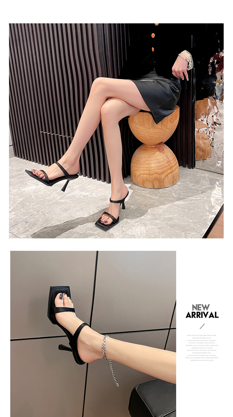 Черные сандалии, летняя обувь на высоком каблуке, слайдеры, 2025 года, популярно в интернете, французский стиль