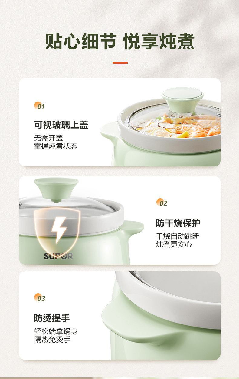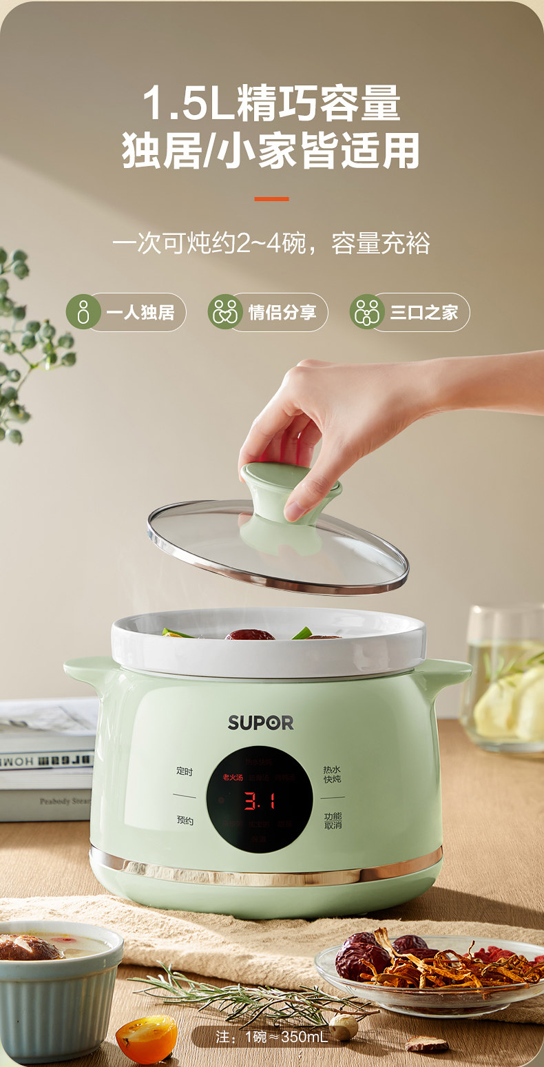 SUPOR ELECTION STEAD PORT CORING COF для домашнего здоровья BB POT CERAMIC Автоматическое тушеное горшок с тушеным тушеном горшок 1-2 человек