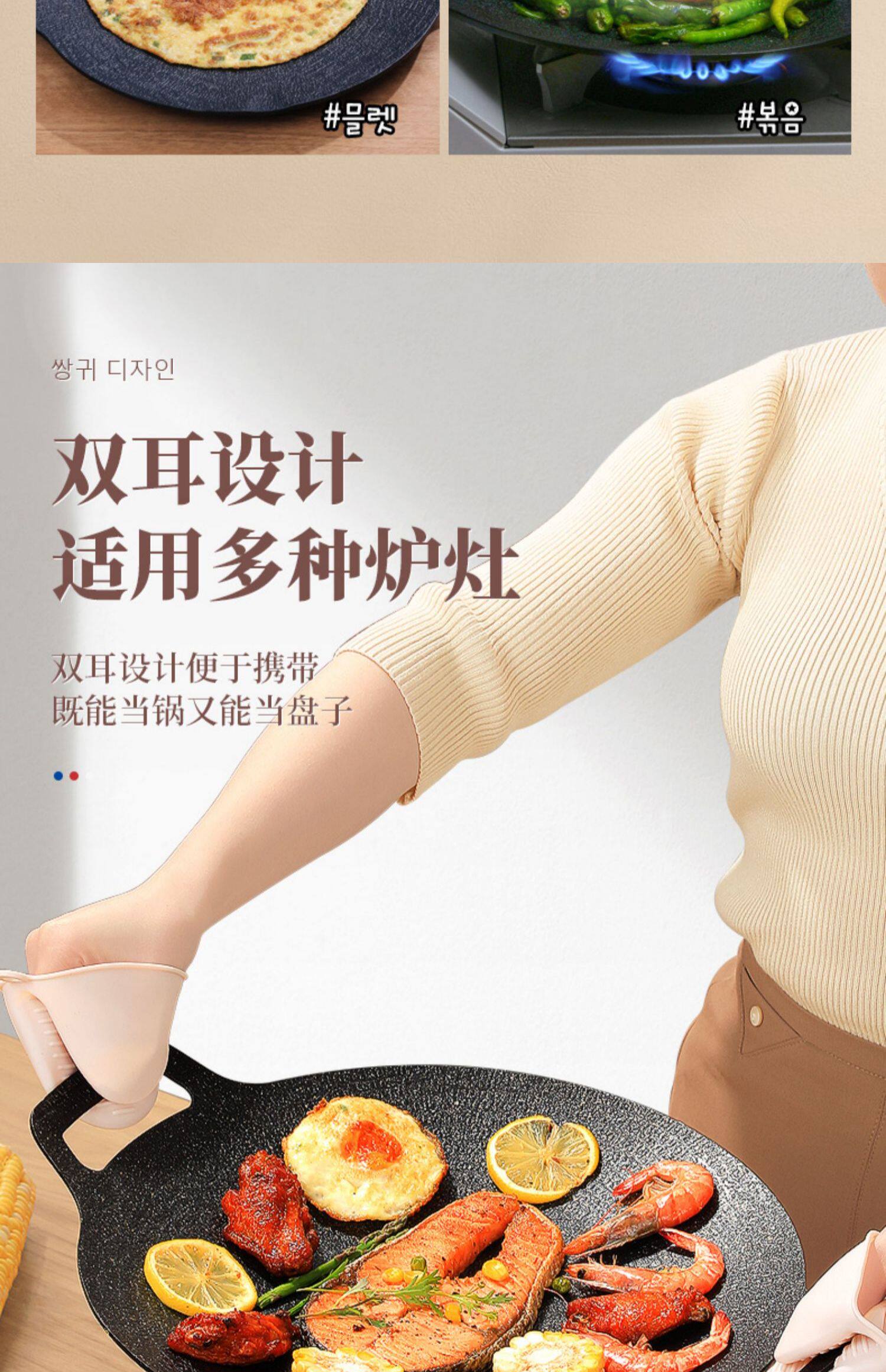 - 34 см [Общая модель] Применимо 4-6 человек (отправка сумки с коллекцией+анти-горячее деревянная ручка+пищевая зажима+щетка для масла)