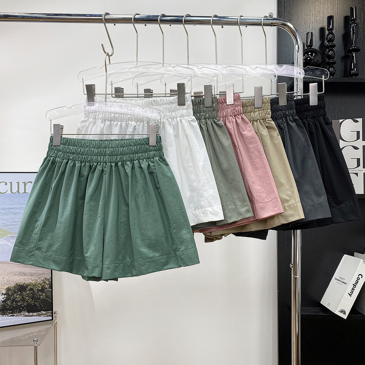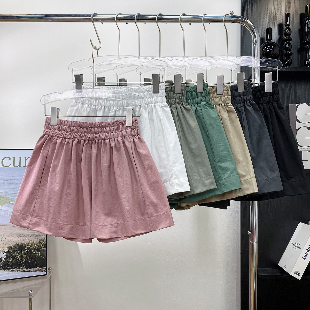 Шелковые шорты, штаны, высокая талия, свободный крой, изысканный стиль, А-силуэт