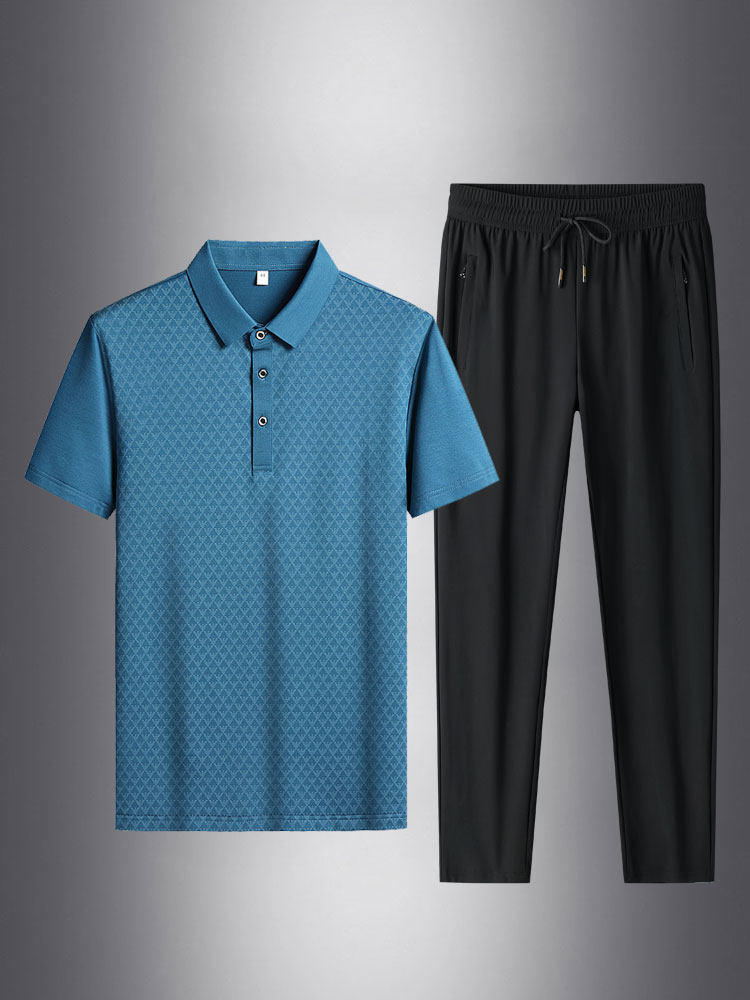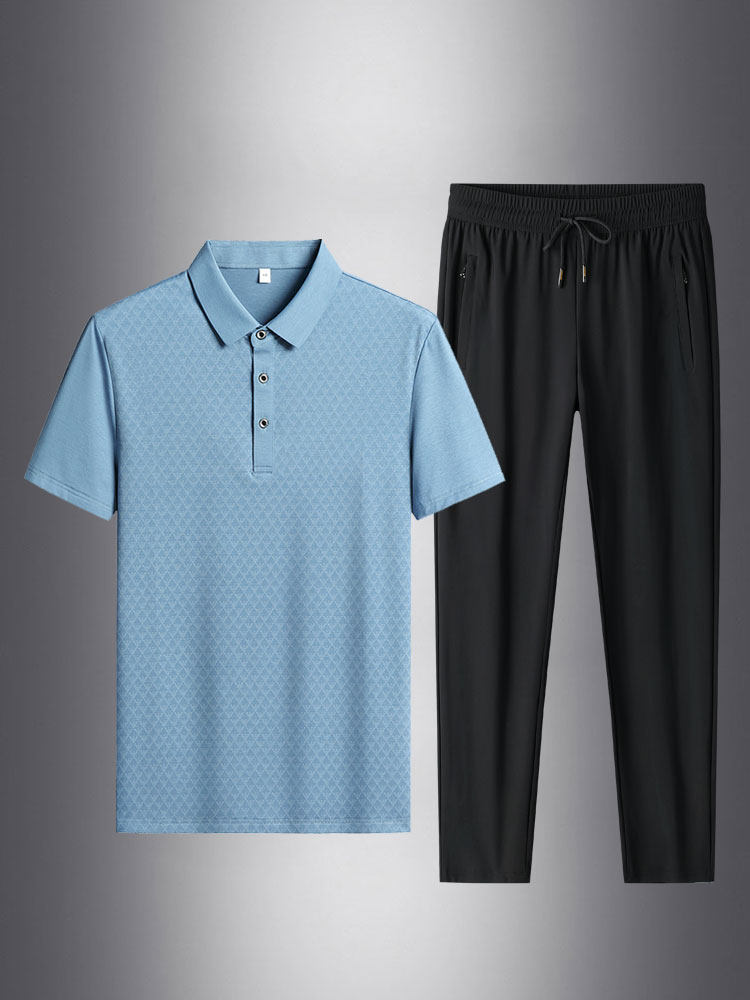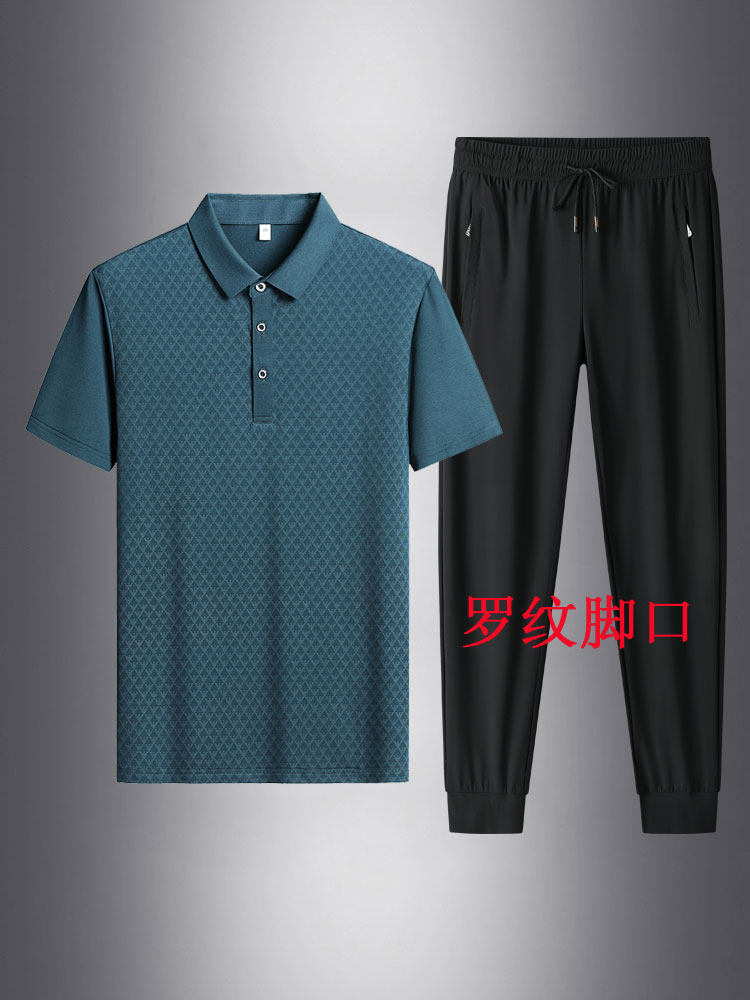 Шелковый летний комплект, тонкая футболка polo, спортивные дышащие штаны, короткий рукав, впитывает пот и запах