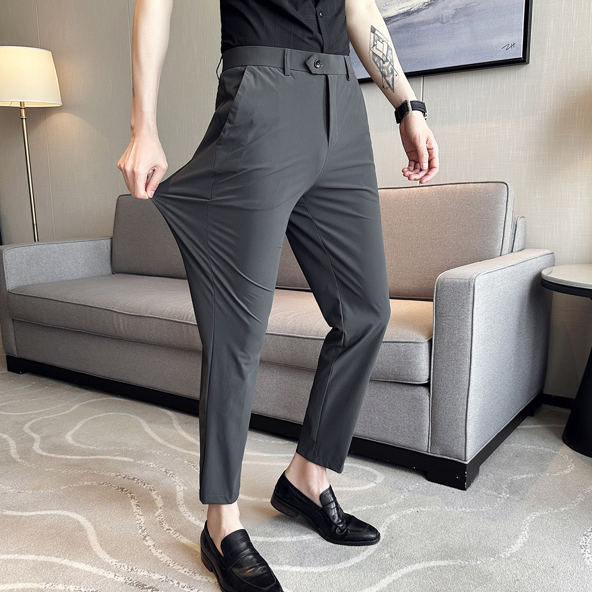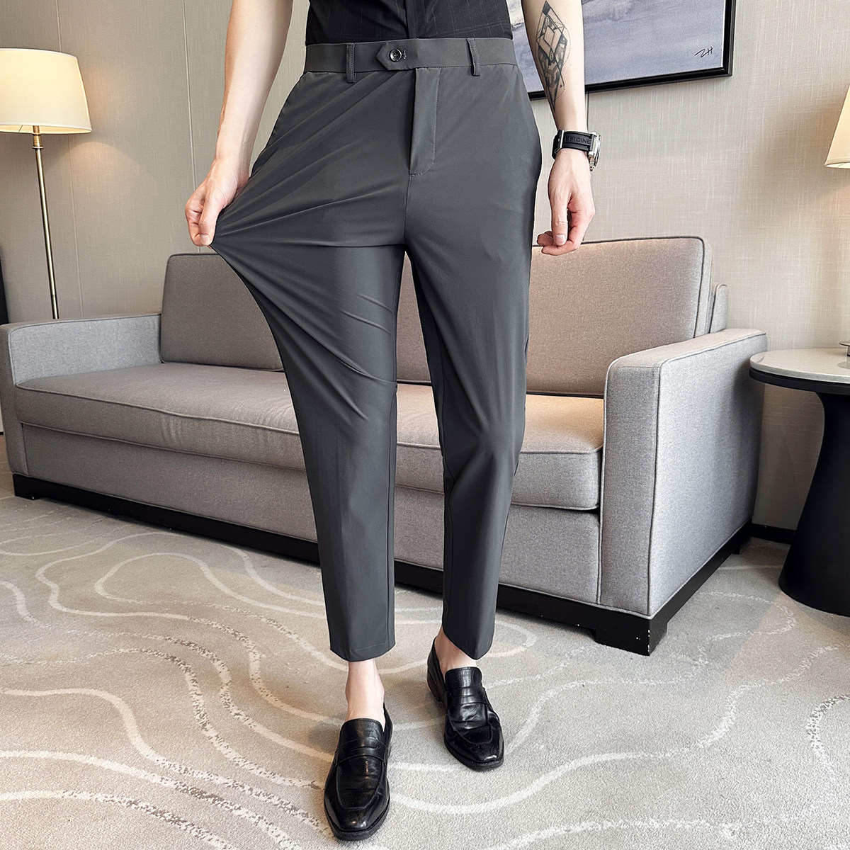 Эластичные шелковые летние тонкие штаны, костюм, в корейском стиле