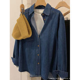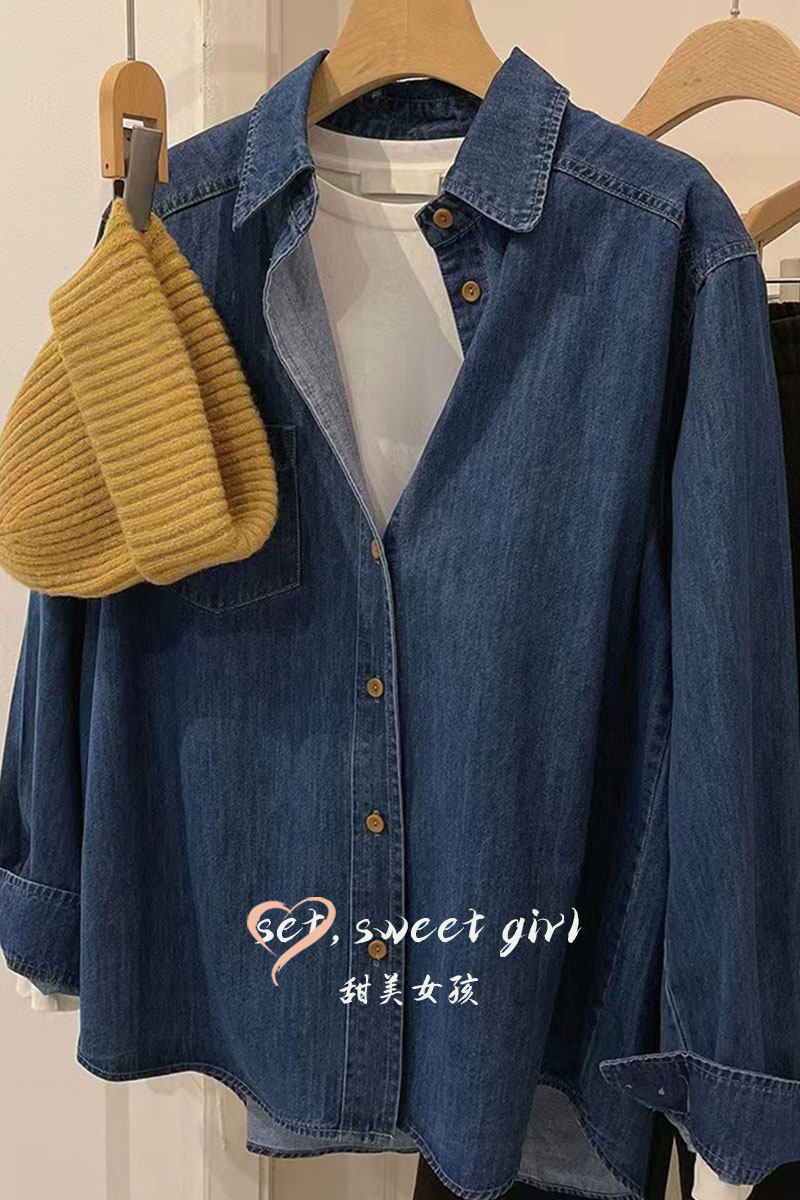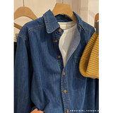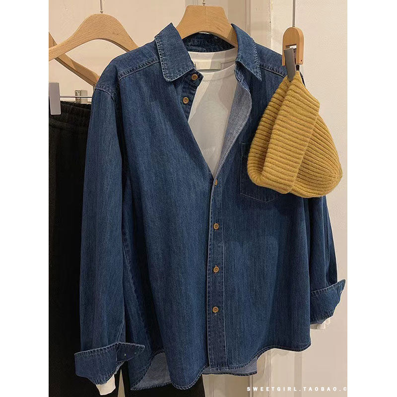 Весенний осенний ретро синий дизайнерский джинсовый лонгслив, рубашка, тренд сезона, подходит для подростков