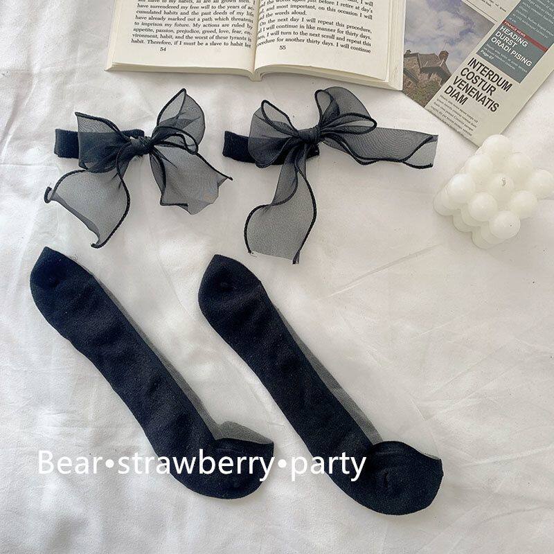 Милые черные стеклянные тонкие носки с бантиком, стиль Лолита, средней длины