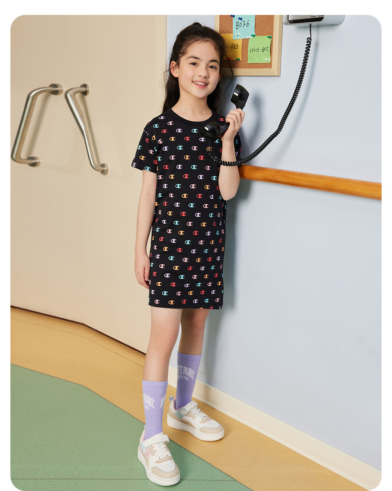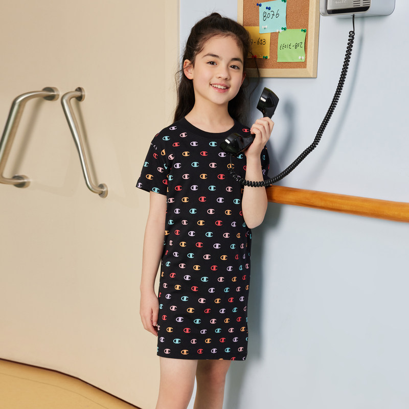 【Зазор】 Чемпионский чемпионский детский летние девочки, средние и маленькие дети Pure Cotton Full Print Press