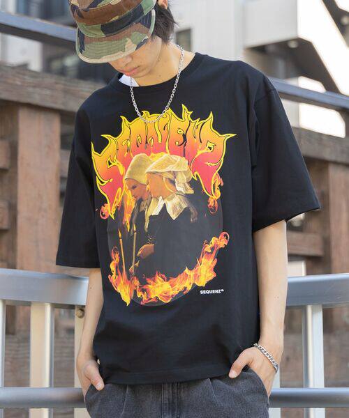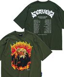 Япония купил последовательность молитва с огненным принтом мужчин и женщин с коротким рукавом Tee 4 Цвет