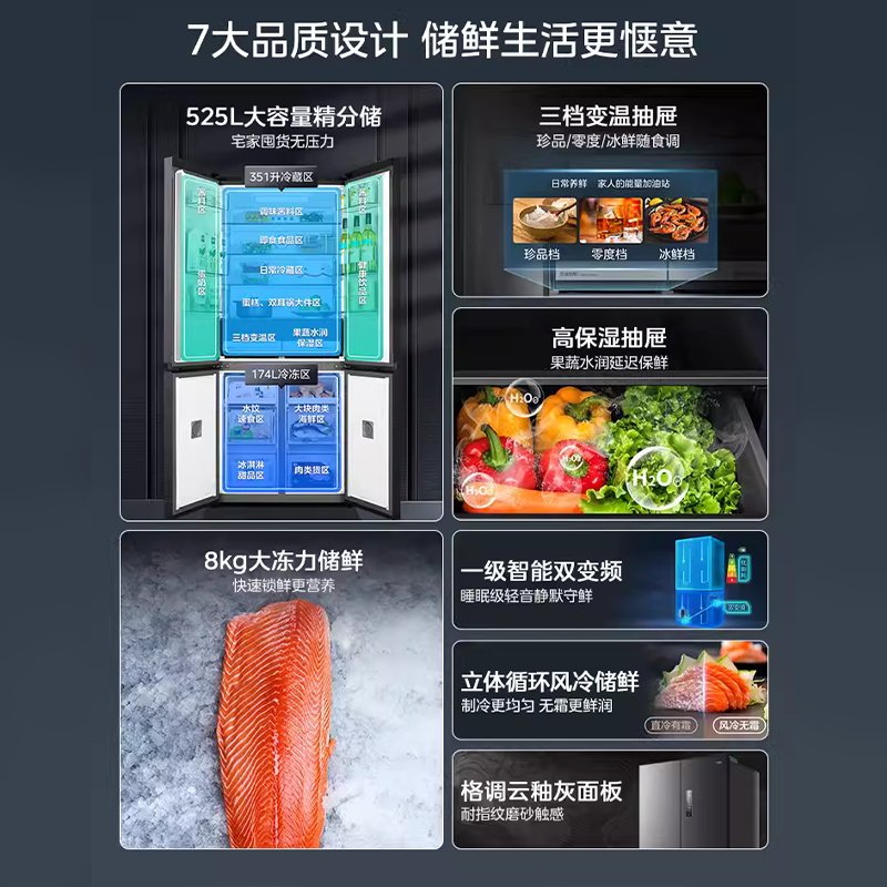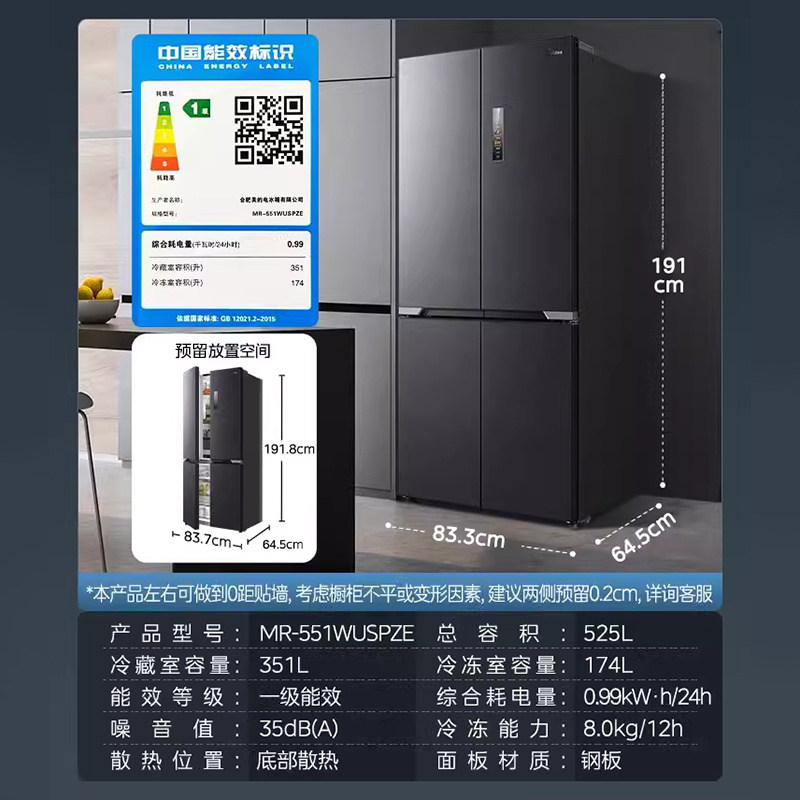 Midea 551 Cross Passenger Double Четыре ультра -тонкие бесшовные, бесшовные, все -уровне дома большая -без морозного холодильника