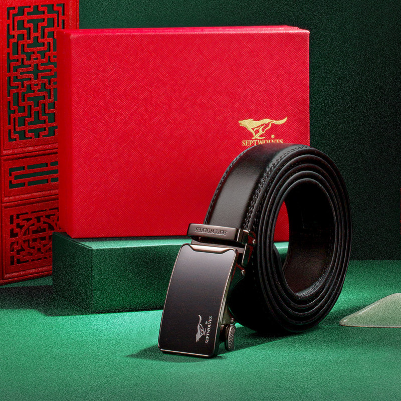 Septwolves, ремень, автоматическая пряжка для отдыха, подарочная коробка, штаны, мужской стиль, из натуральной кожи