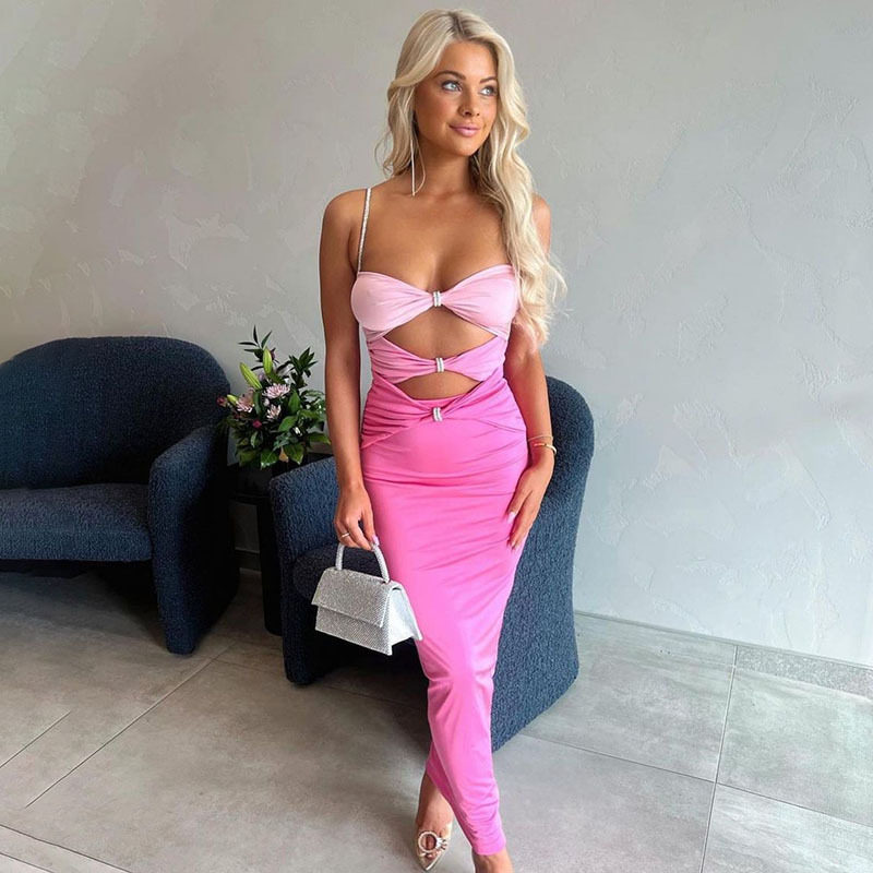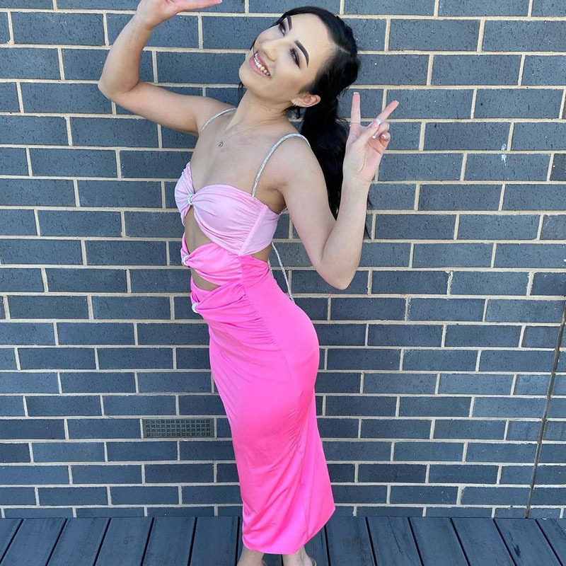 Розовое милое платье, брендовая длинная юбка, градиент, эффект подтяжки, средней длины