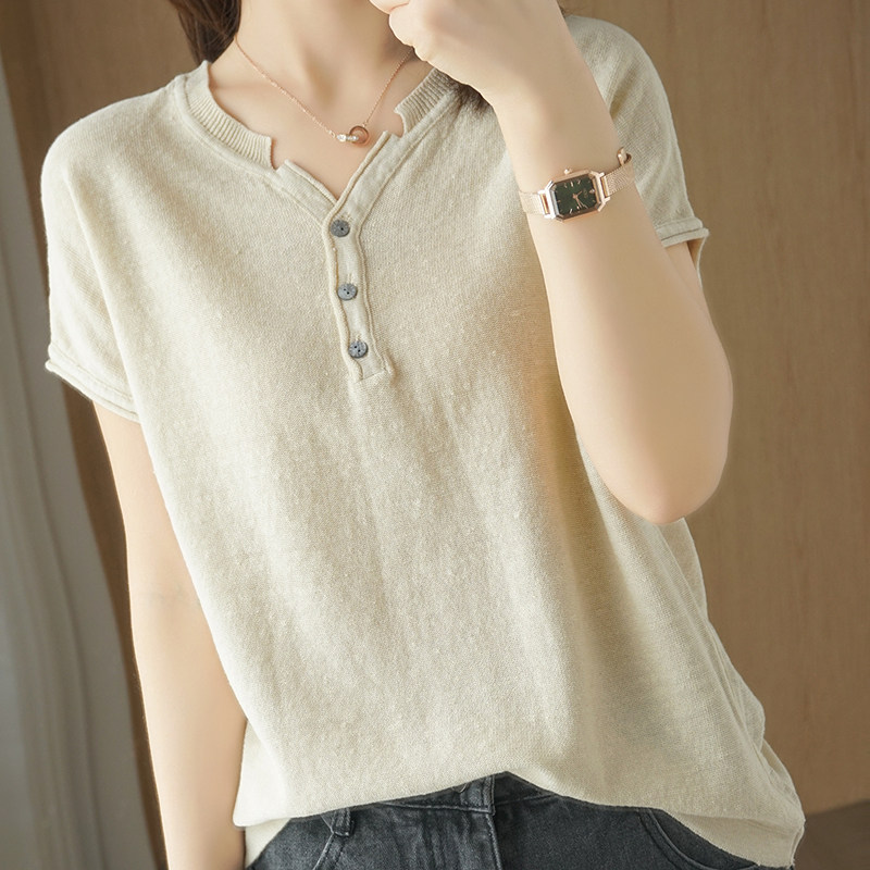 Хлопковая трикотажная летняя футболка с коротким рукавом для отдыха, 24 года, большой размер