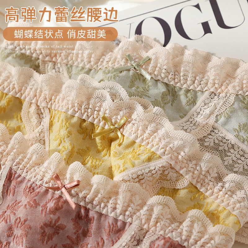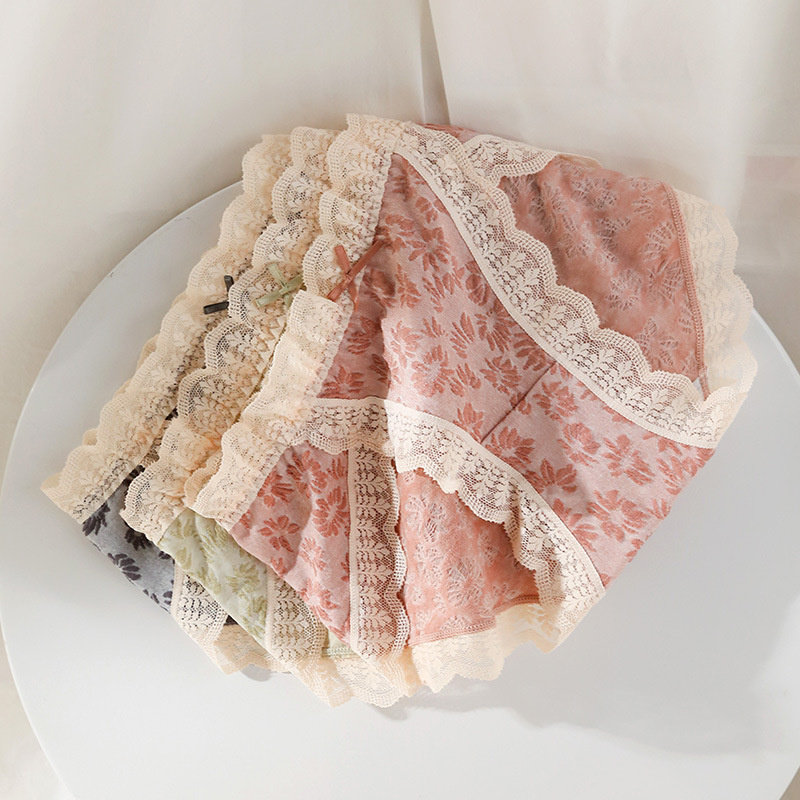 Хлопковое антибактериальное кружевное нижнее белье, японские милые шорты, средняя посадка